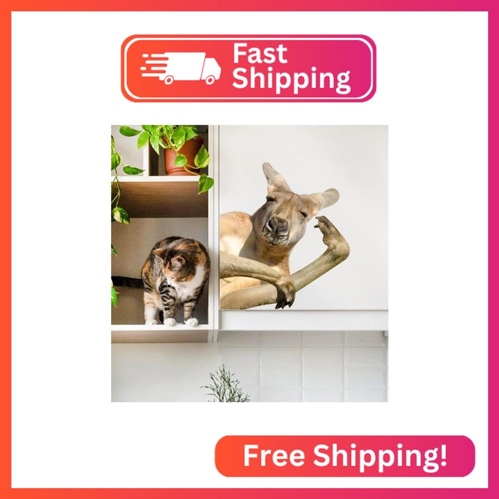 Strong Kangaroo Wall Decal,Funny Animal Window Sticker,Weird Gift for Friends