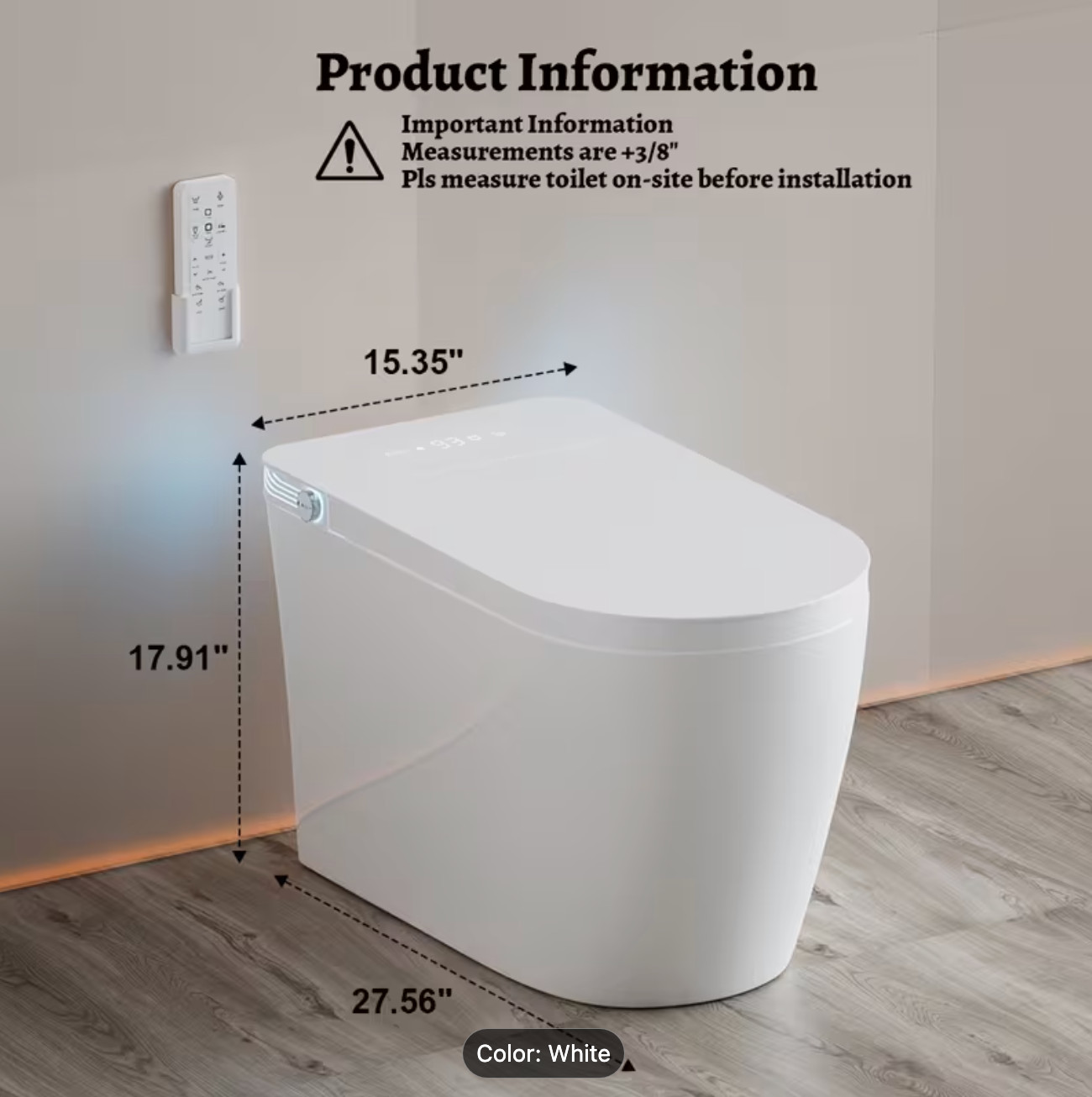 Smart Toilet with Bidet Heated Seat, Auto-Lift Lid/Soft-Close Dryer Auto Flush