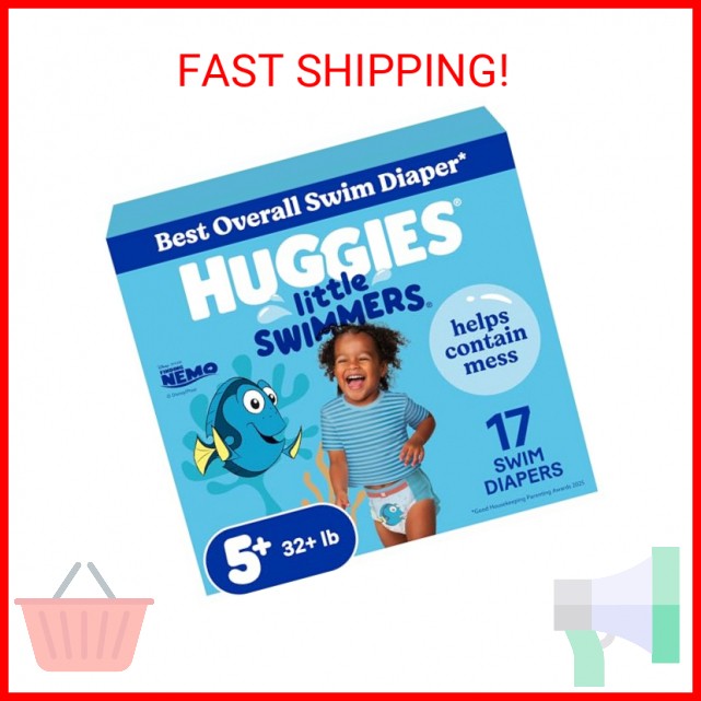 Huggies Little Swimmers Disposable Swim Diapers, Size 5-6 32 lbs , 17 Ct
