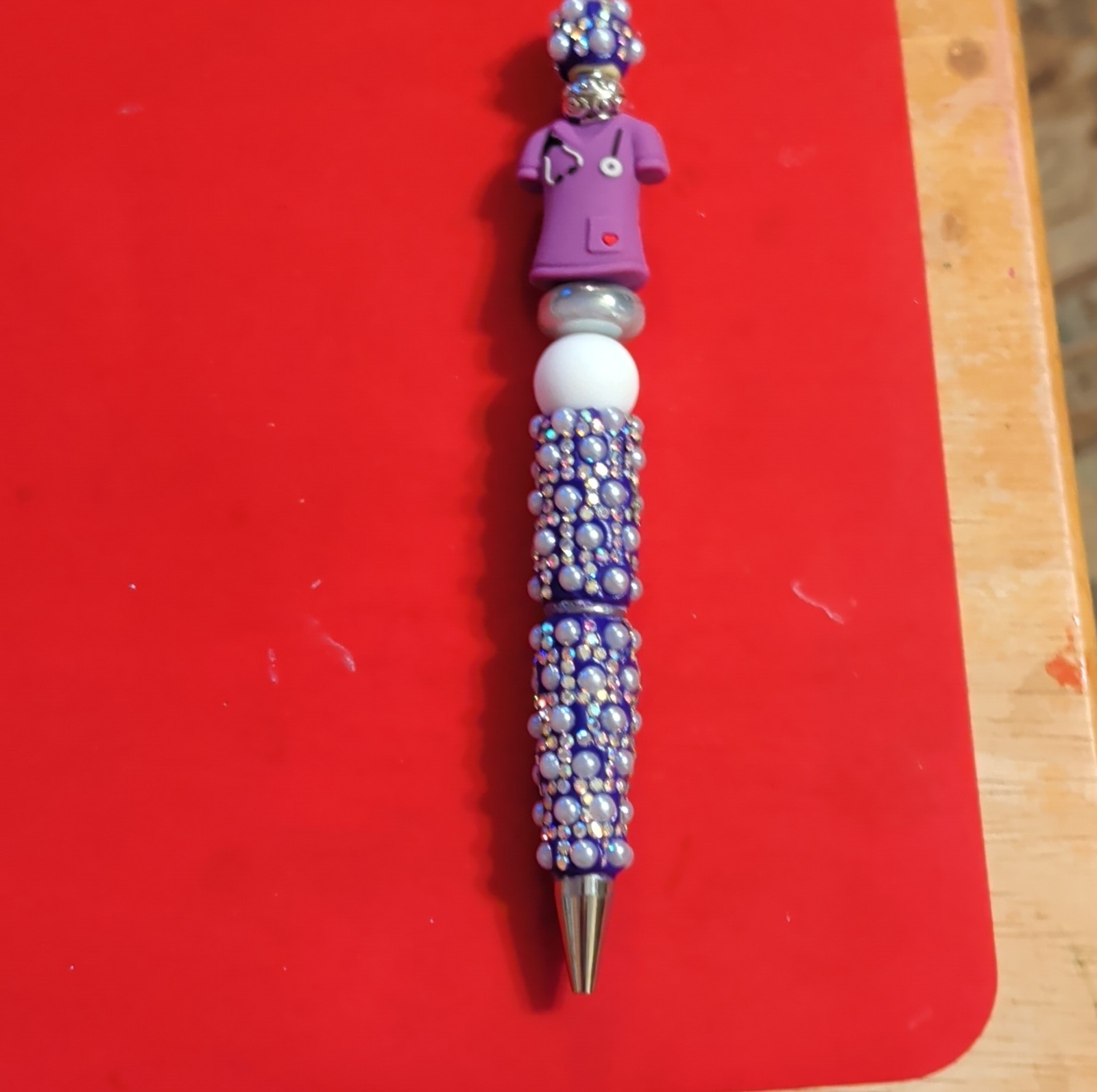 • Handmade Decorative Beaded Ballpoint Pen Nurse Theme Purple Blue Polymer Clay