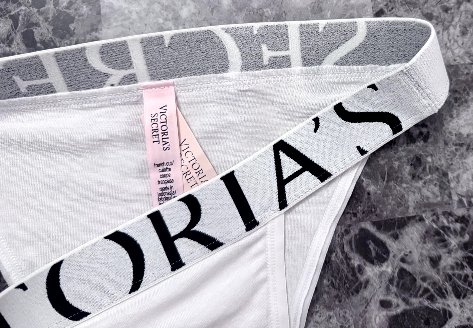 как выглядит NWT VICTORIAS SECRET WHITE THICK LOGO BAND FRENCH CUT HIGH LEG BRIEF PANTIES фото