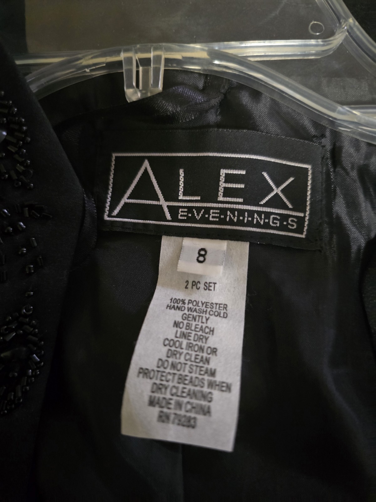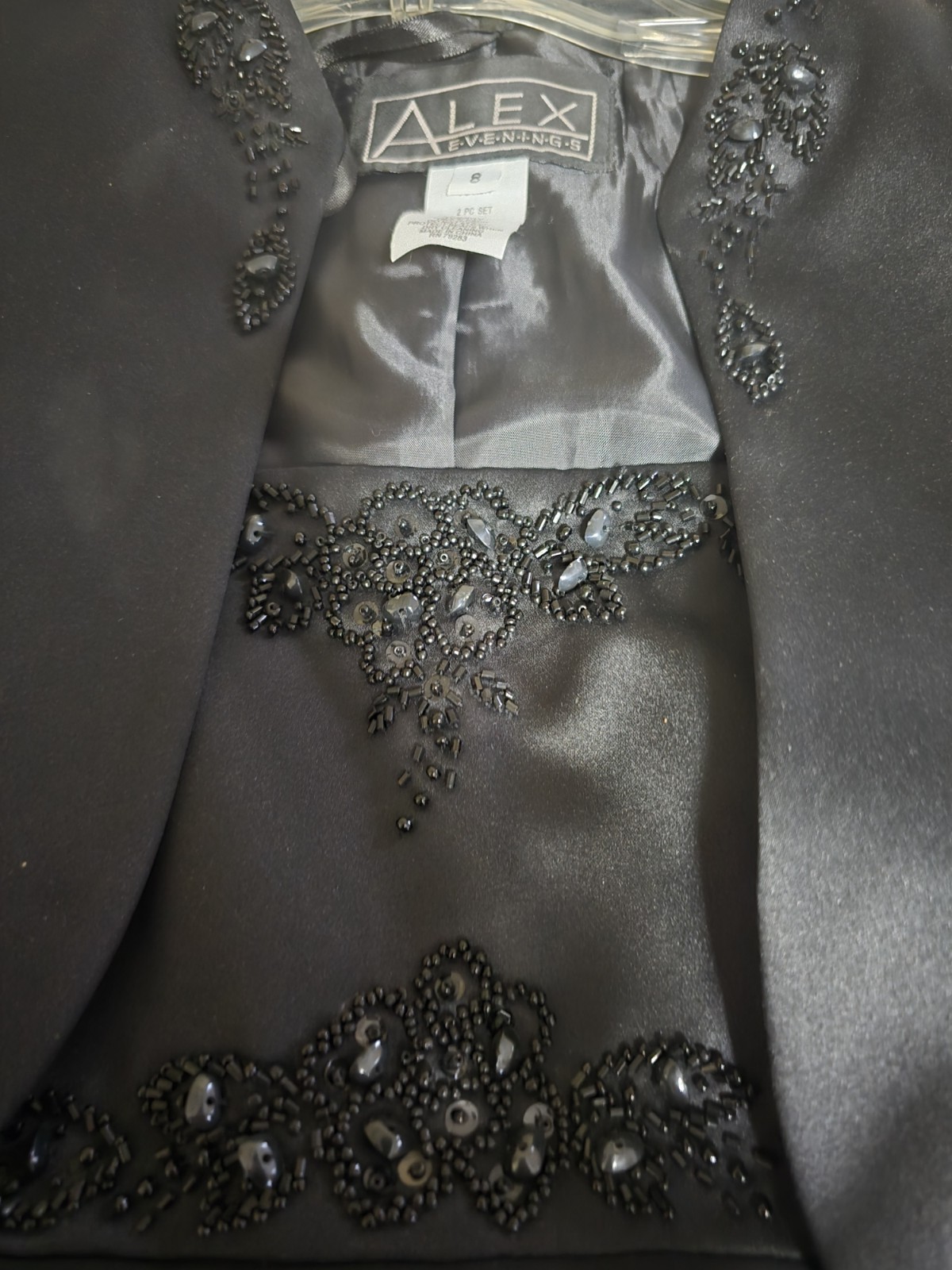 2 Piece Alex Evenings Women's Black Dress With Sequins size 8