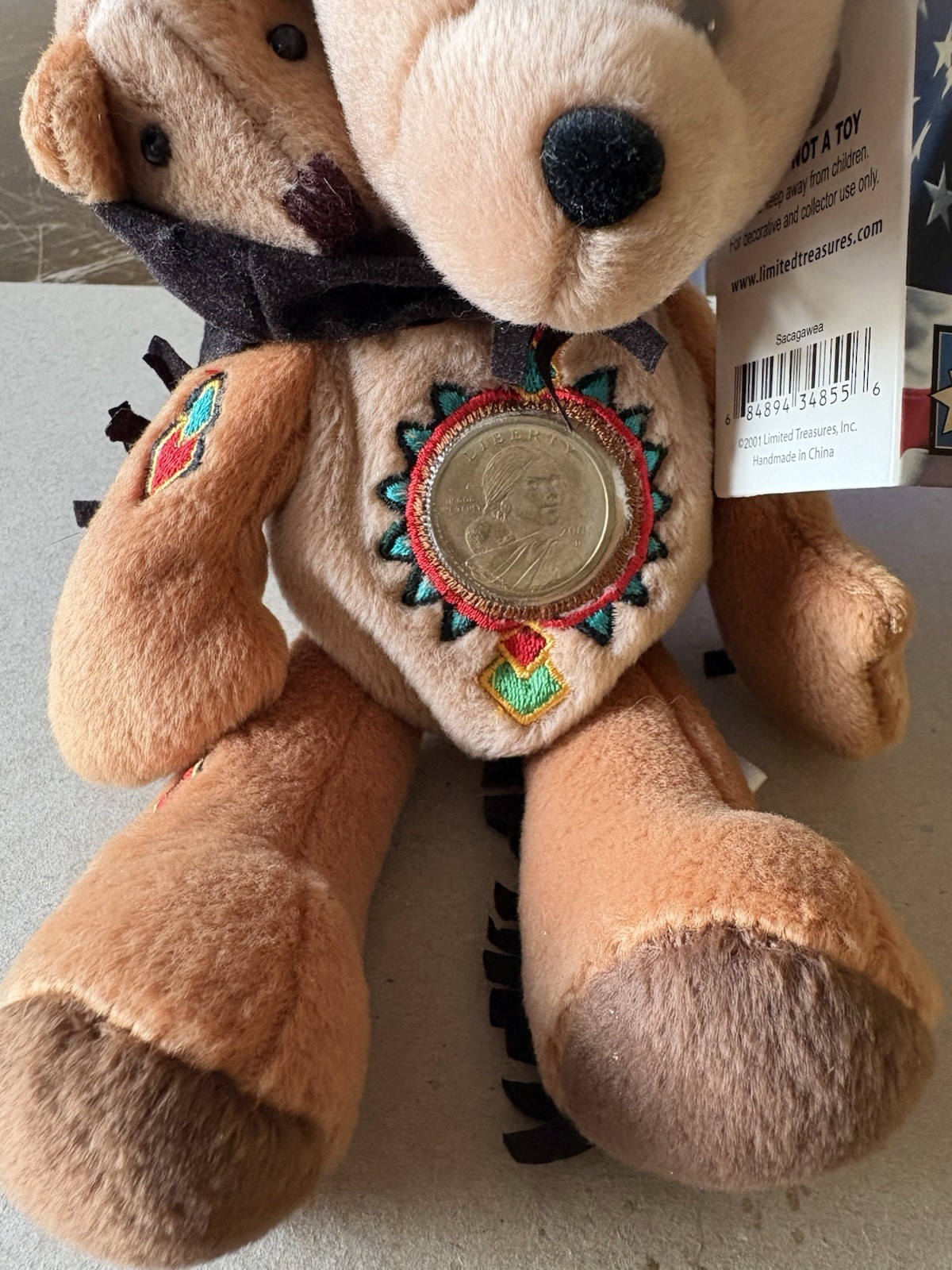 Sacagawea Pomp Golden Dollar Beanie Bear Collectible Coin 2001 W/ Tags Free Ship