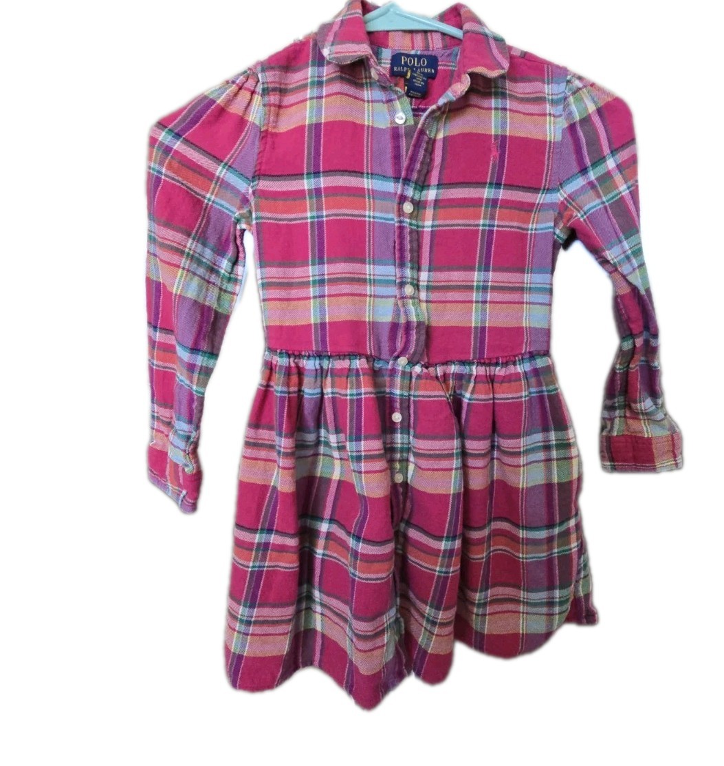 как выглядит Polo Ralph Lauren Girls Plaid Cotton ShirtdressSZ 6 Pockets Pink Pony Retail 75 фото