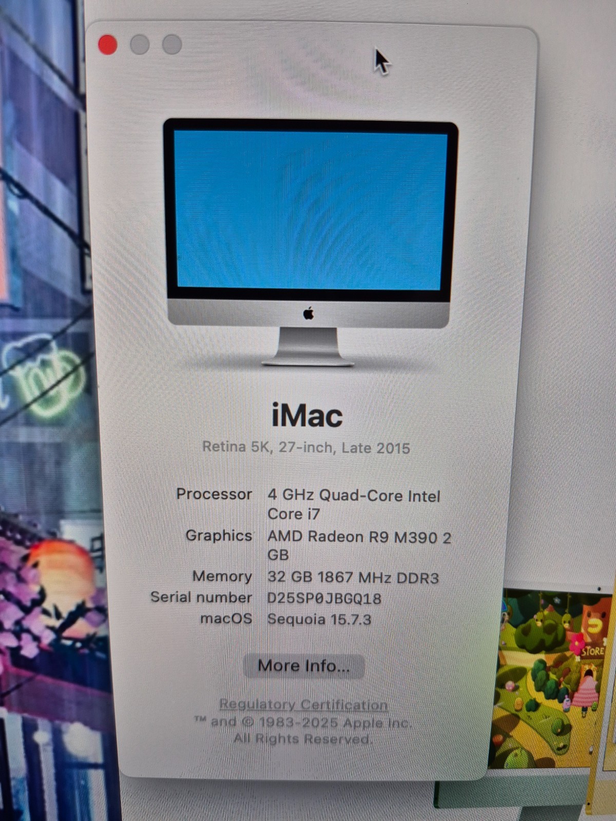 iMac retina 5k 27-inch late 2015 4 GHz Quad-Core Intel Core i7 32GB of Ram