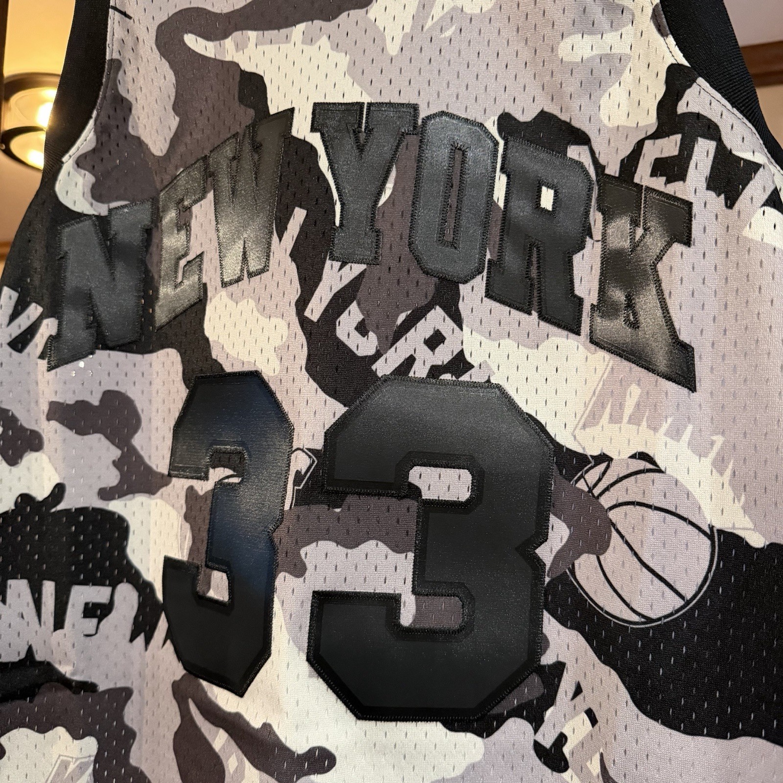 • NWT Men's New York Knicks Ghost Black Patrick Ewing Throwback Jersey Large