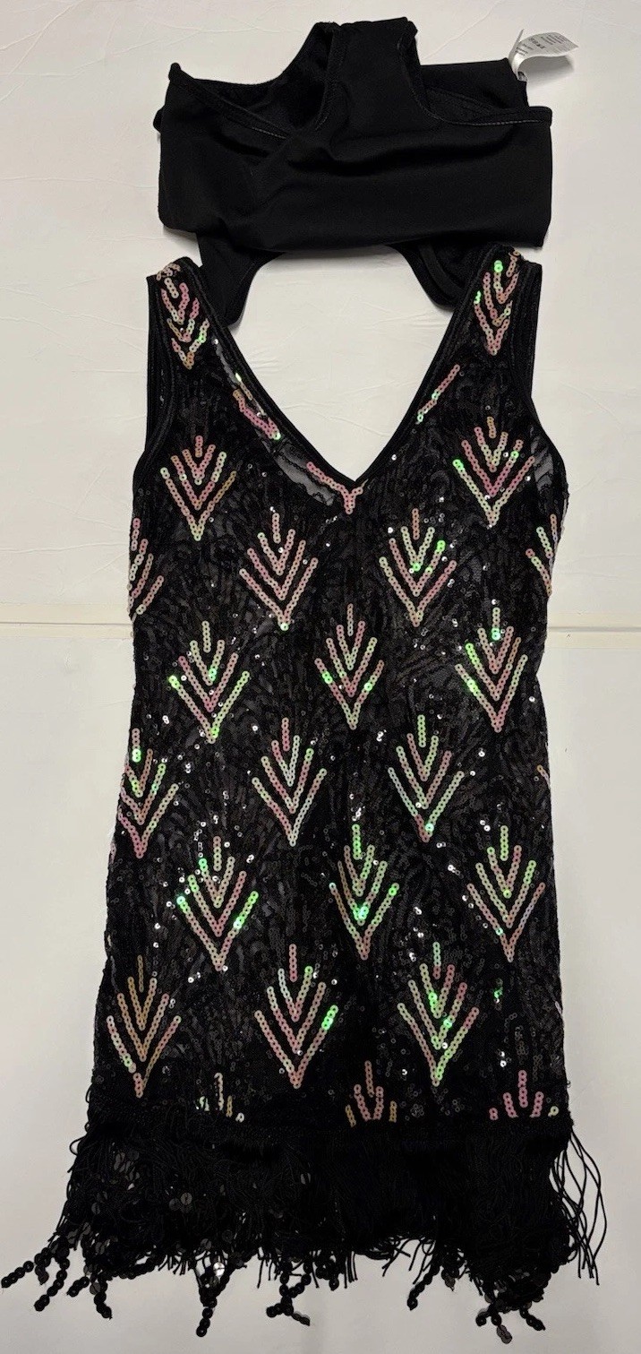 Weissman Girls Dance Costume Jazz Outfit Fringe Sequins 20s Flapper Sz Child M