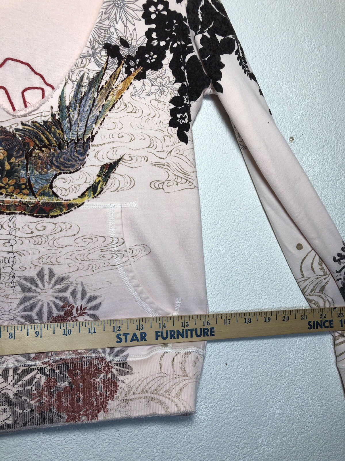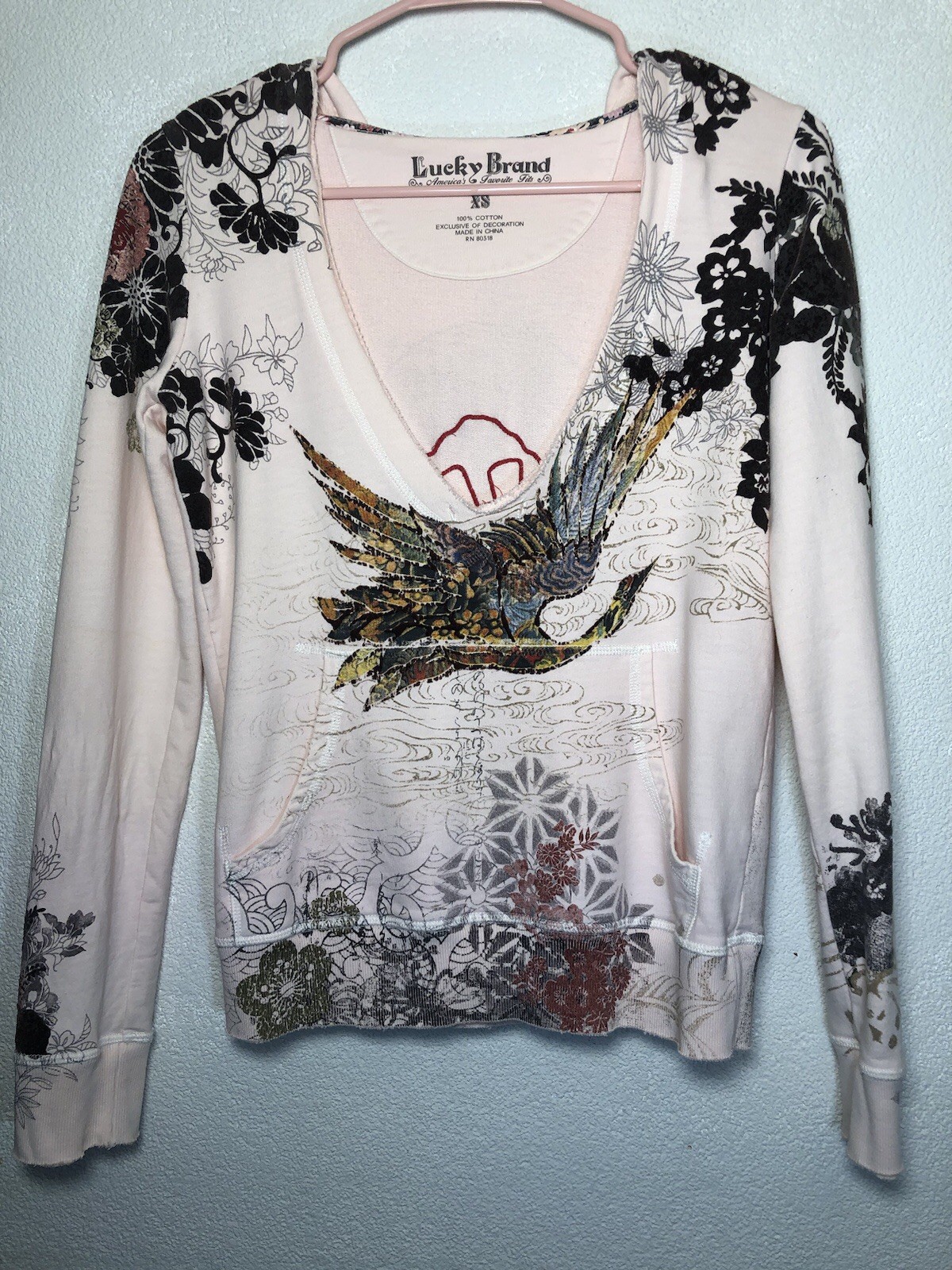 как выглядит Lucky Brand Y2K Asian Crane Embroidered Hoodie Sweatshirt Floral Size XS фото