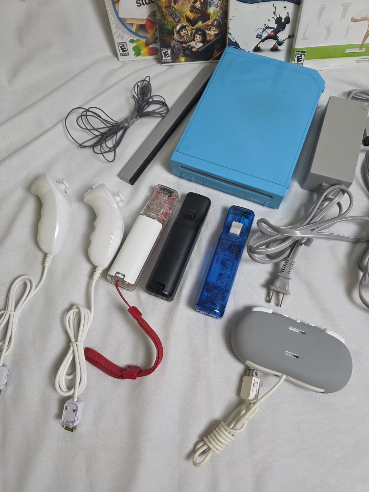 Nintendo Wii Console Blue RVL-101 Bundle Controllers, Games, Cables Tested