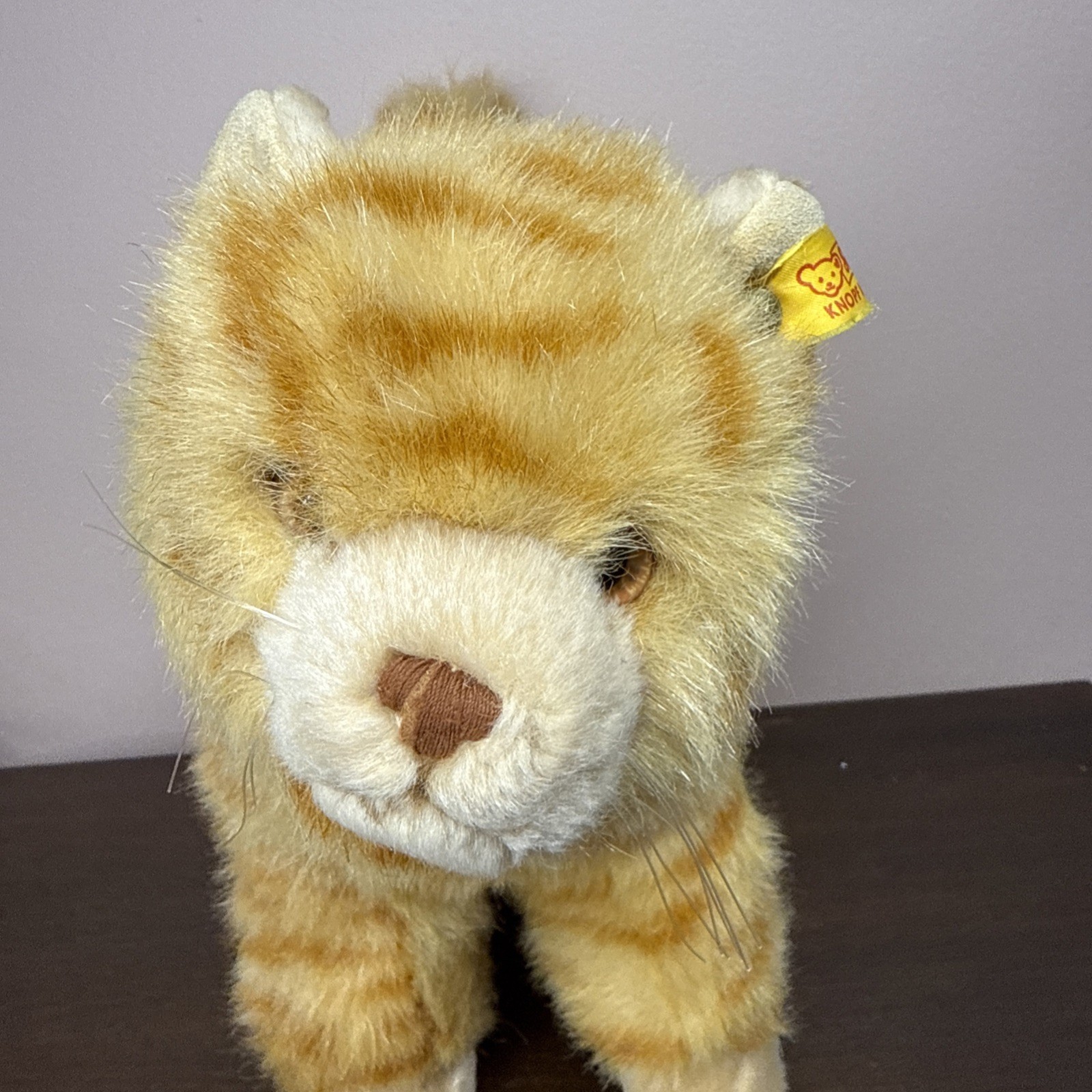 как выглядит Vtg Steiff Standing Kitty Cat Orange Fur Eyes Brass Button Yellow Tag 099571 фото