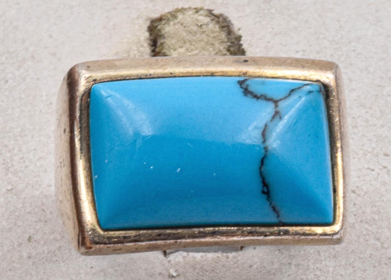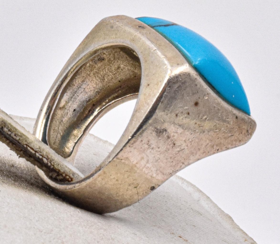 как выглядит NF Southwestern Style Sterling Silver Turquoise color stone wide band Ring s6 фото
