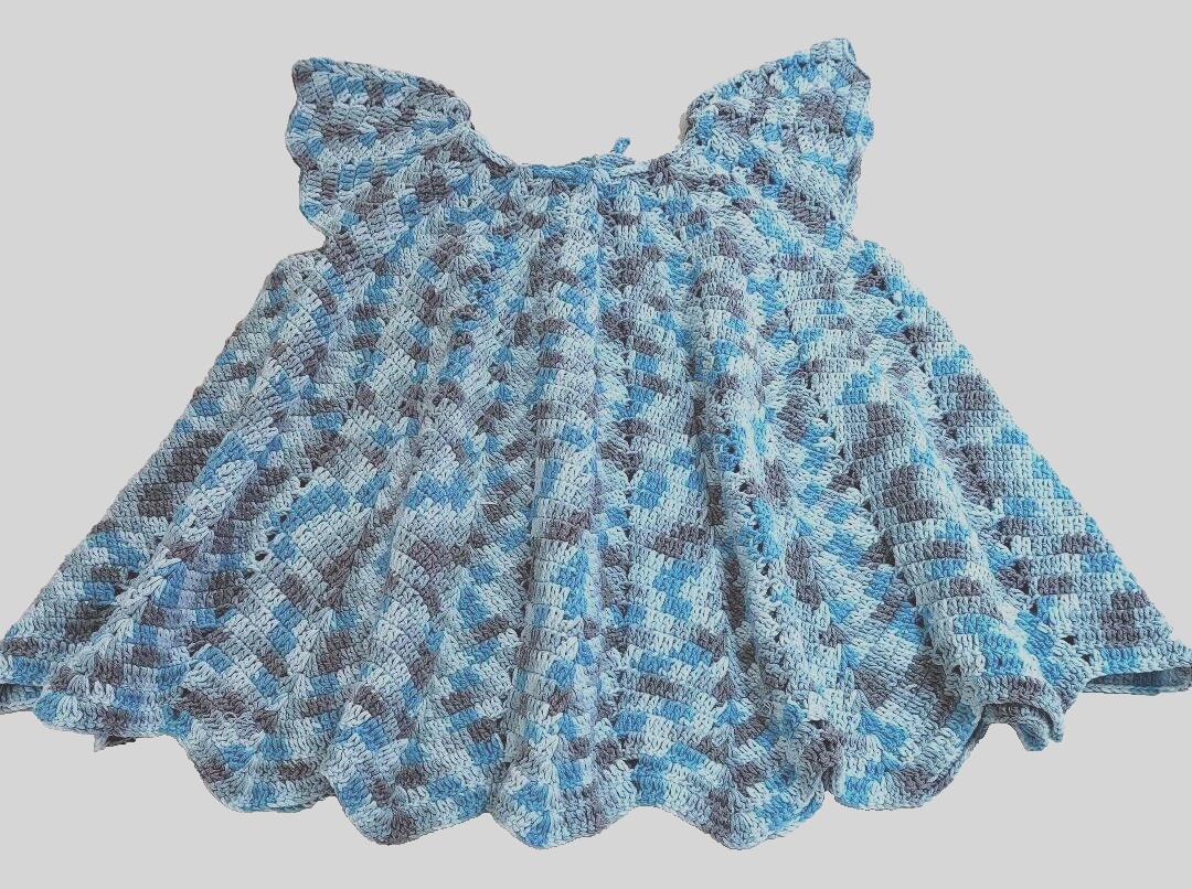 Hand Crocheted One Size Shirley Temple Swing Dress Flutter Sleeves Pointelle Hem