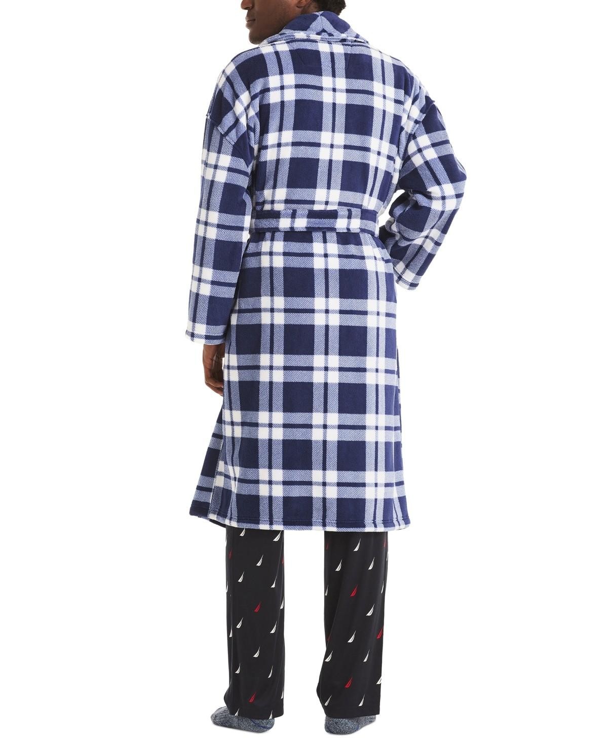 как выглядит Nautica Mens Shawl Collar Soft Feel Plaid Robe Blue Depths- One Size фото