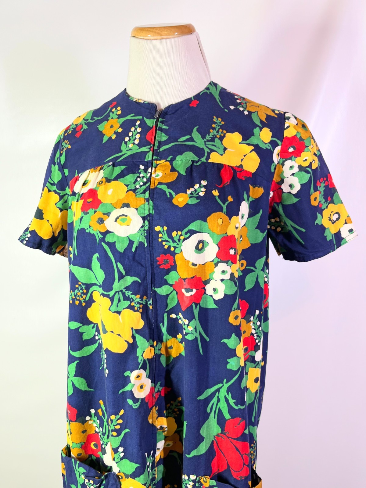 Vintage Homemade Floral Housecoat Zip-Front Colorful