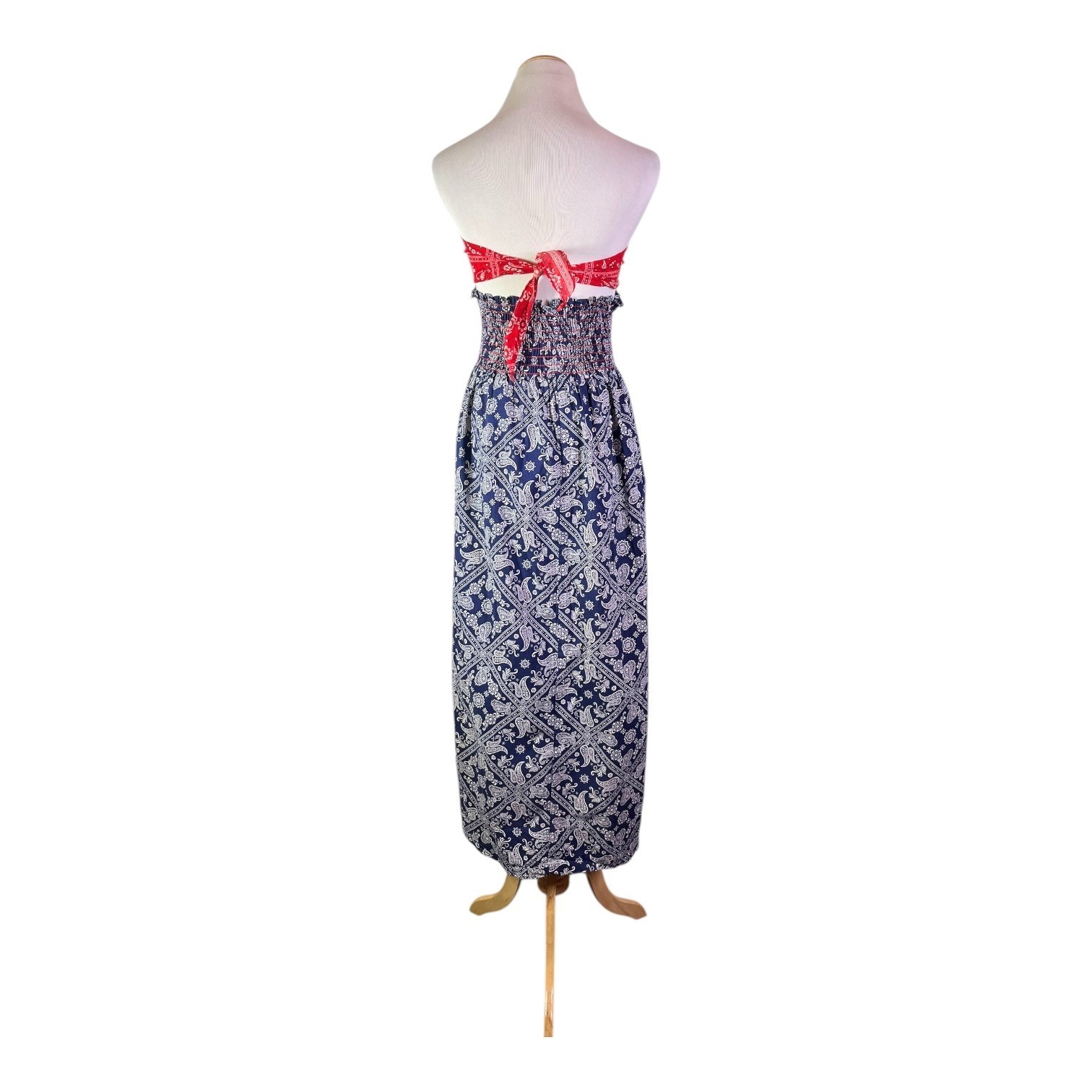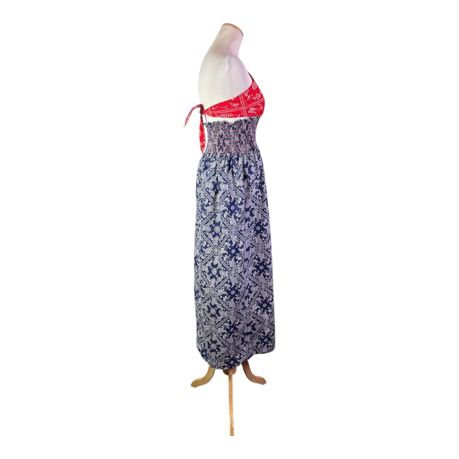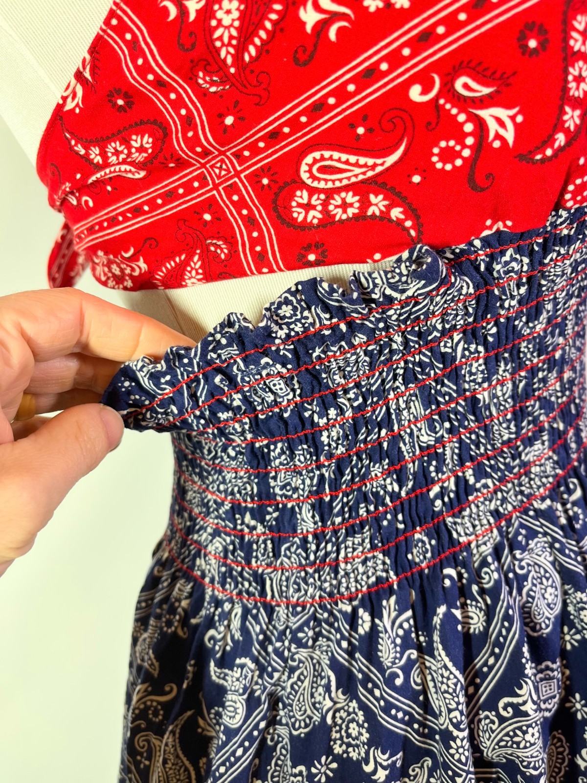 Vintage Joy Stevens Bandana Dress Tie Back Smocked Waist