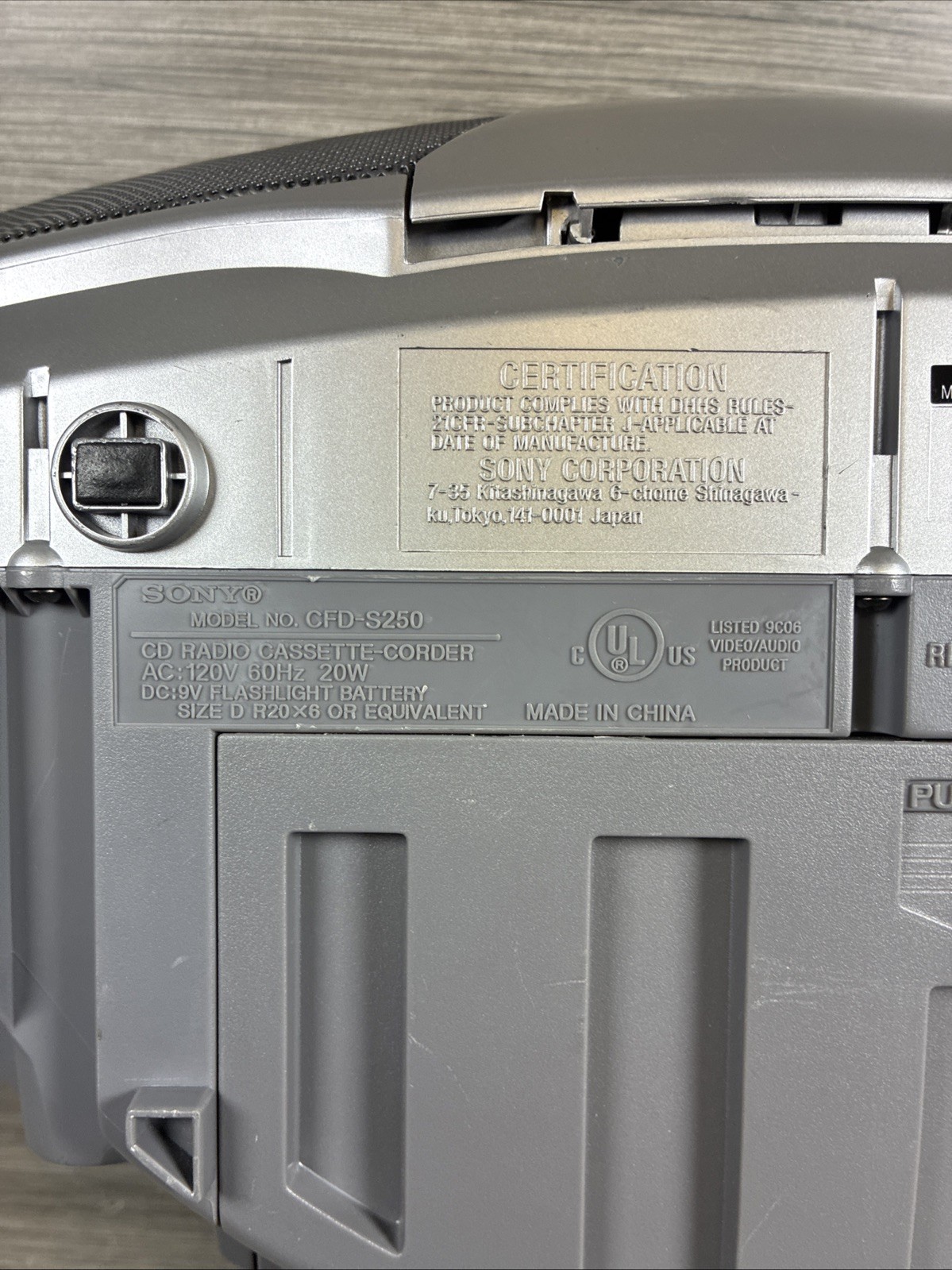 Sony CFD-S250 AM/FM Radio Vintage Boombox CD Player Cassette Recorder w Cord EUC