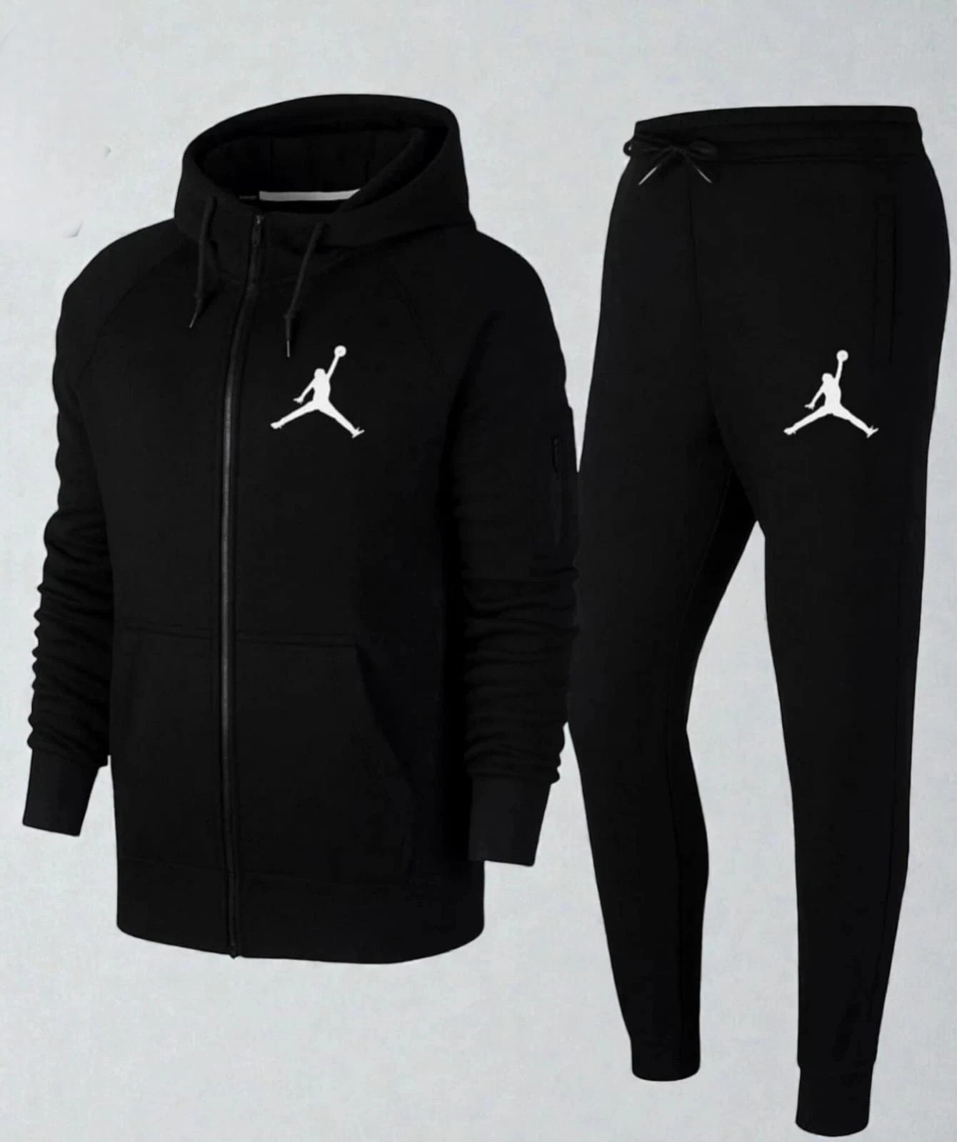 Men's Jordan Grey Tracksuit Set Zip Hoodie To Match Joggers Athletic Streetwear