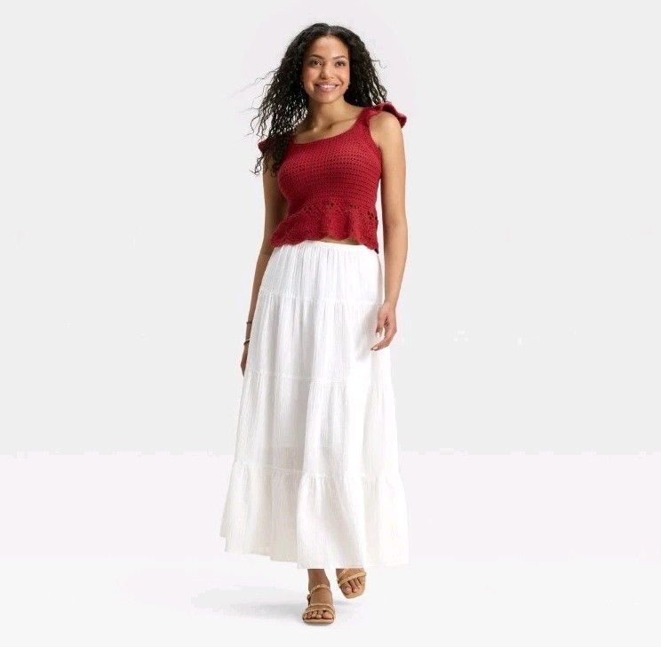 как выглядит Womens Crinkle Gauze Pull-On Maxi Skirt Universal Thread White Large Beach Boho фото