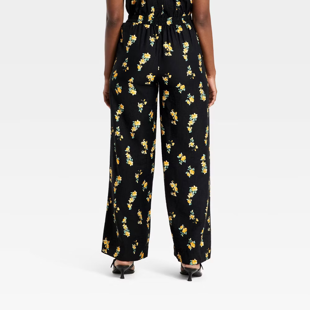 Women's Slub Crepe Printed Pants - A New Day Black Floral XL