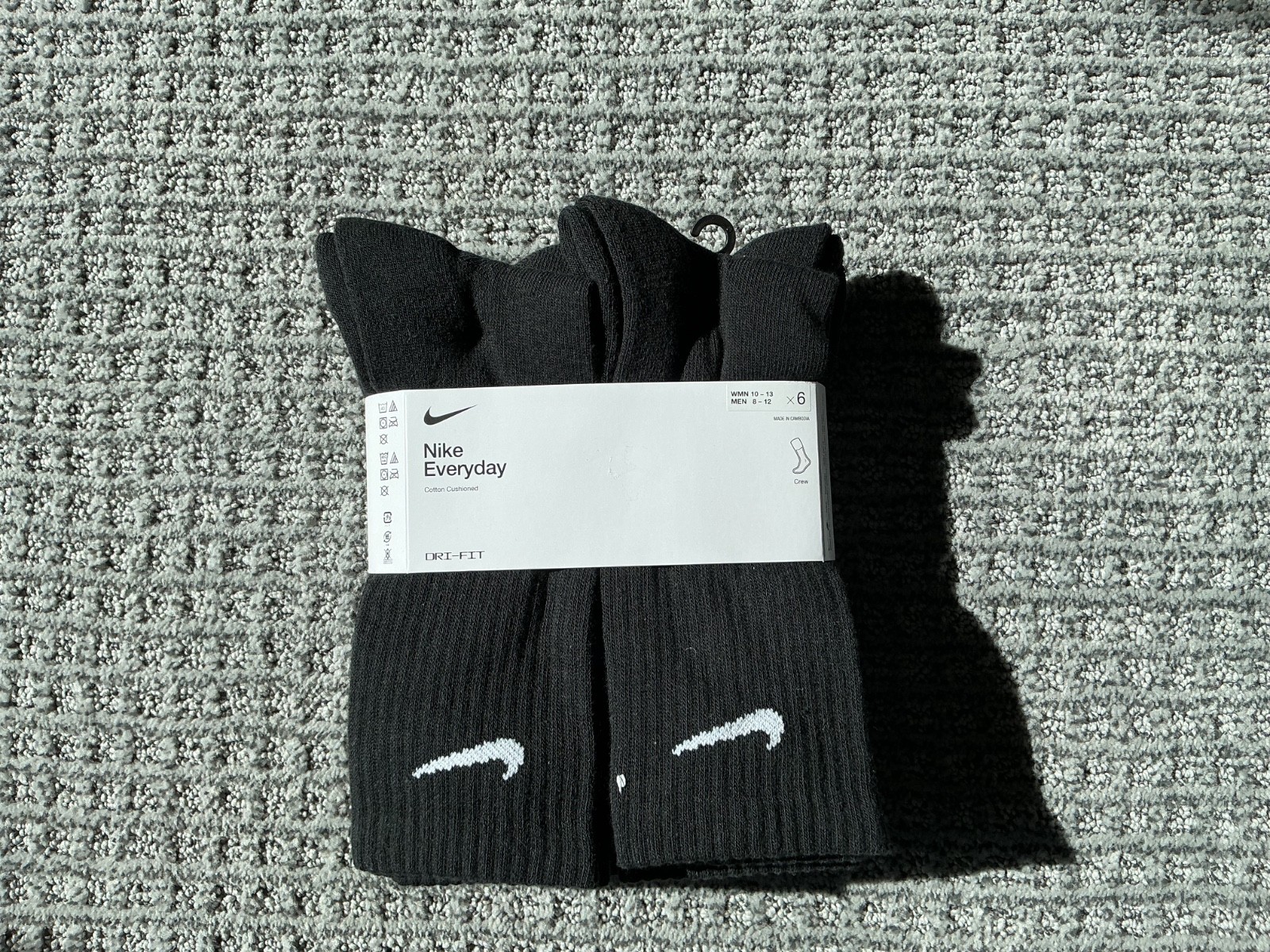 NIKE Men s Everyday Dri-Fit Cushion Crew Socks Large Pack of 6 Black SZ 10-13
