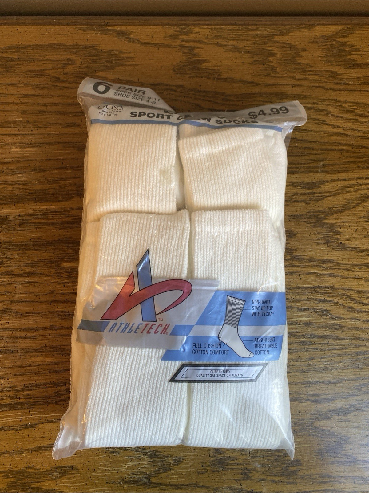 6 Vintage Athletech Crew Socks Cushion Comfort Socks Womens 9-11