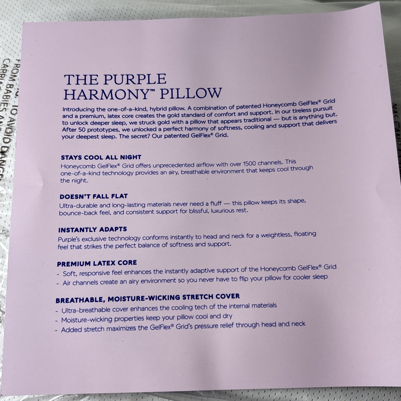 Harmony by PURPLE Pillow, Standard Medium,Side Combo Sleepers