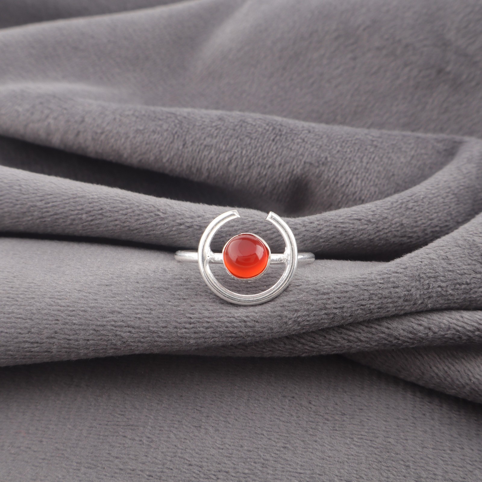 925 Sterling Silver Round Carnelian Band Unique Anniversary Wedding Ring Jewelry