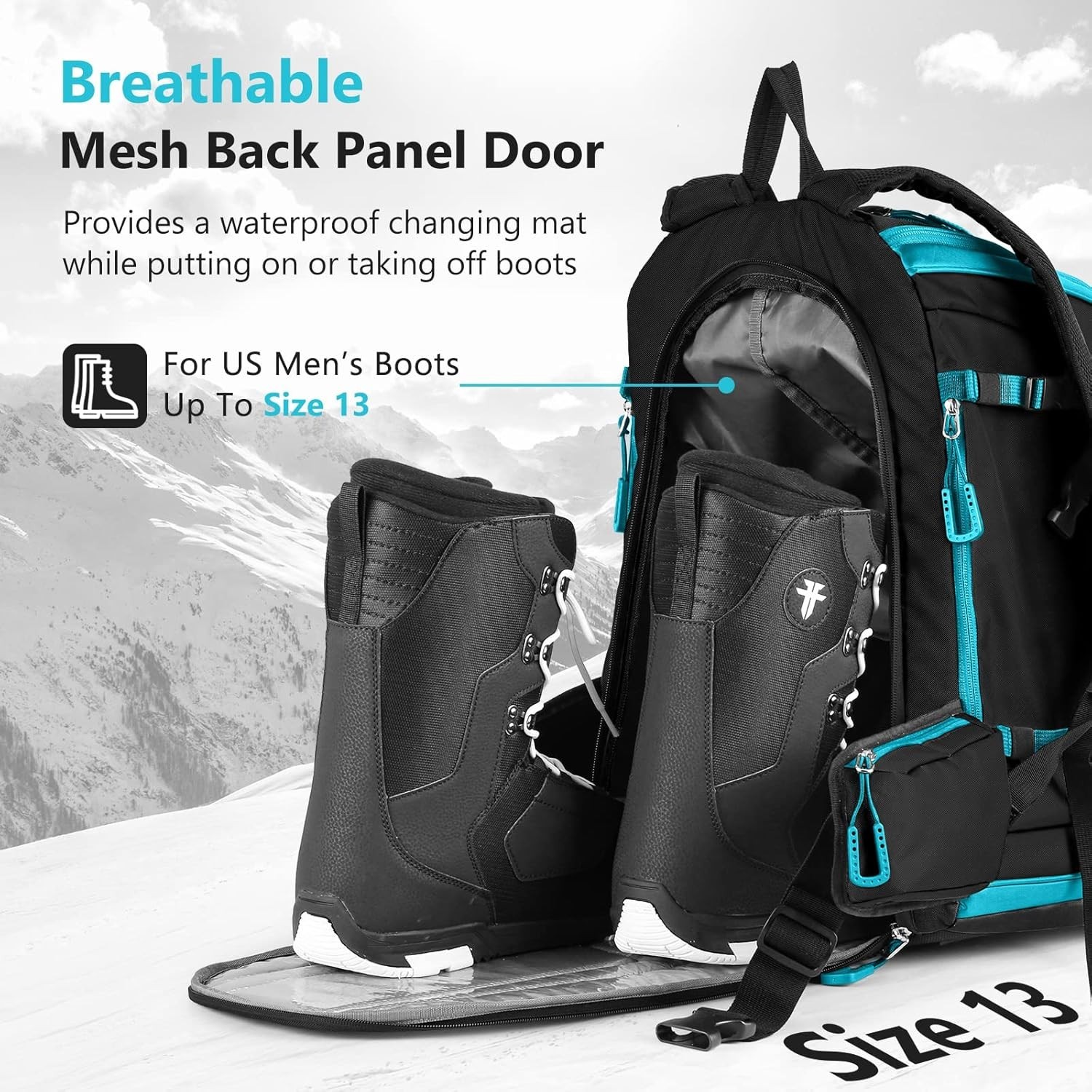 Ski Boot Bag 65L Padded Waterproof Ski Travel Backpack Gear Accessories