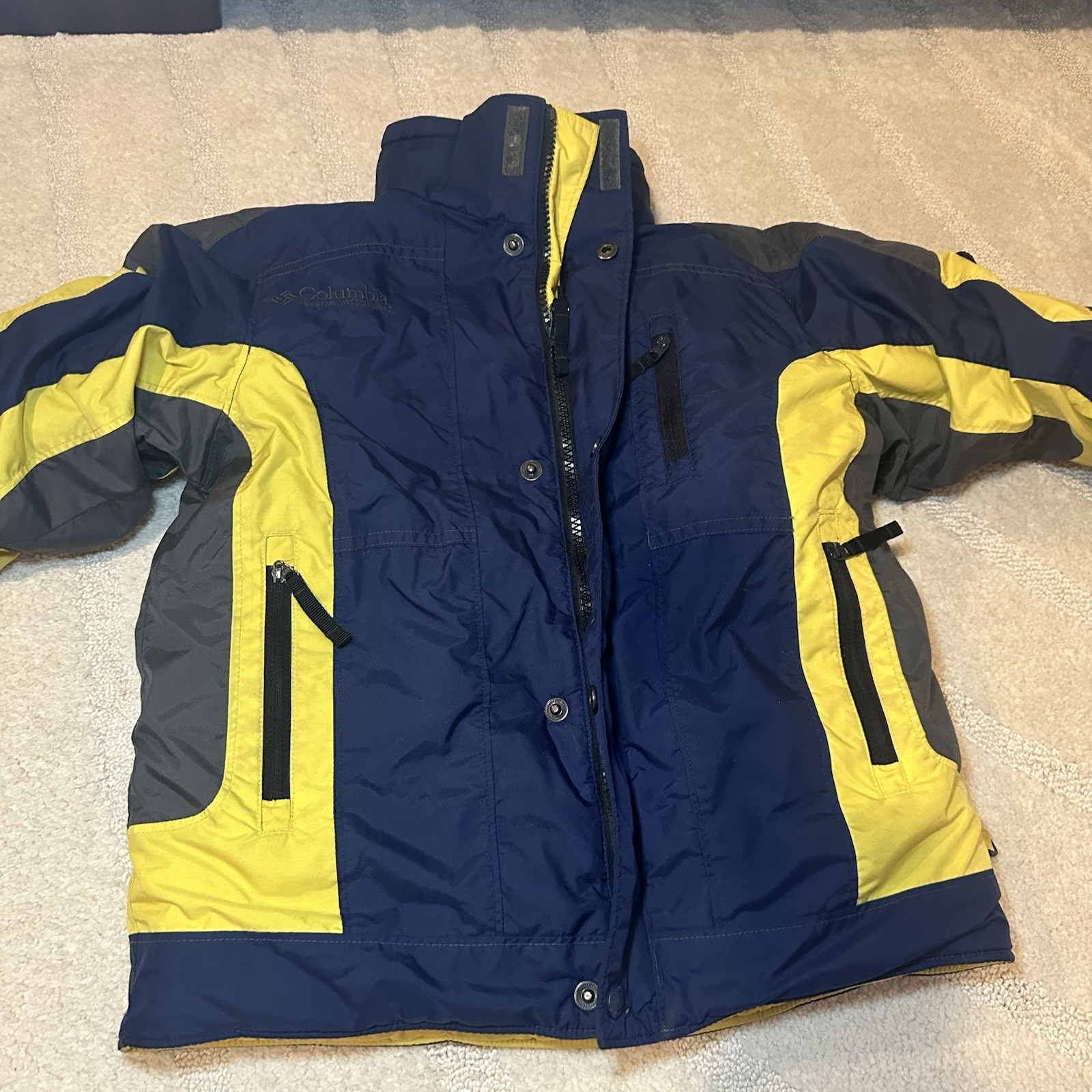 Columbia Kids Ski Puffer Jacket Colorblock Blue Yellow Gray Size 6/7 Youth