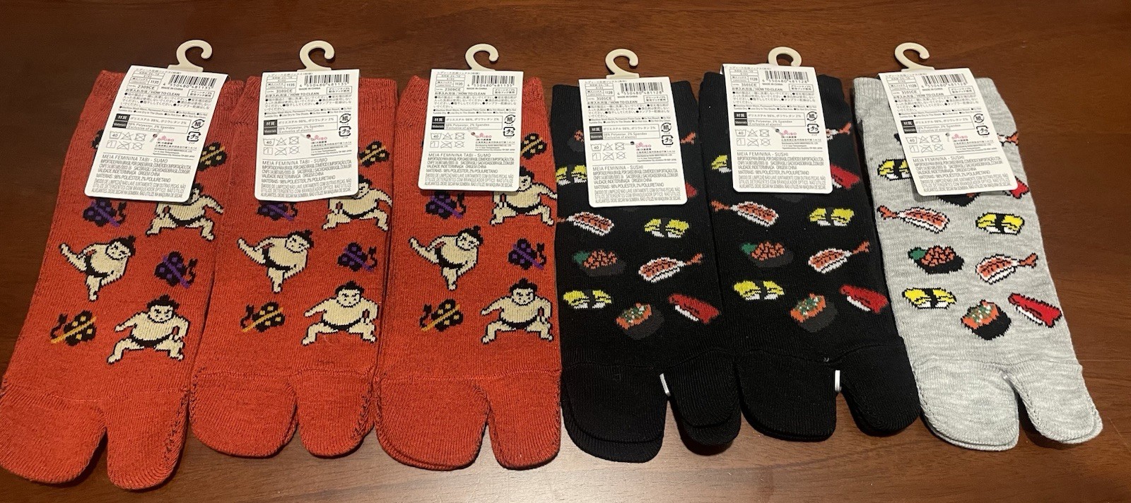 Japanese traditional tabi socks for women, Sumo Sushi 6 pairs Total New Daiso