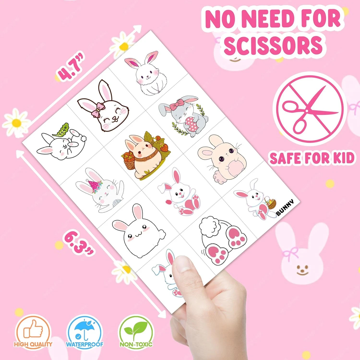 8 Sheets 96PCS Bunny Pre-Cut Temporary Tattoos for Kids Cute Bunny Birthday