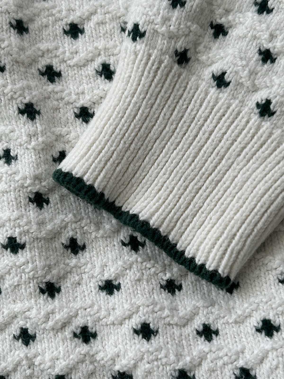 Vintage 90s Cape Isle Knitters Fisherman Sweater Cream Dark Green Textured L