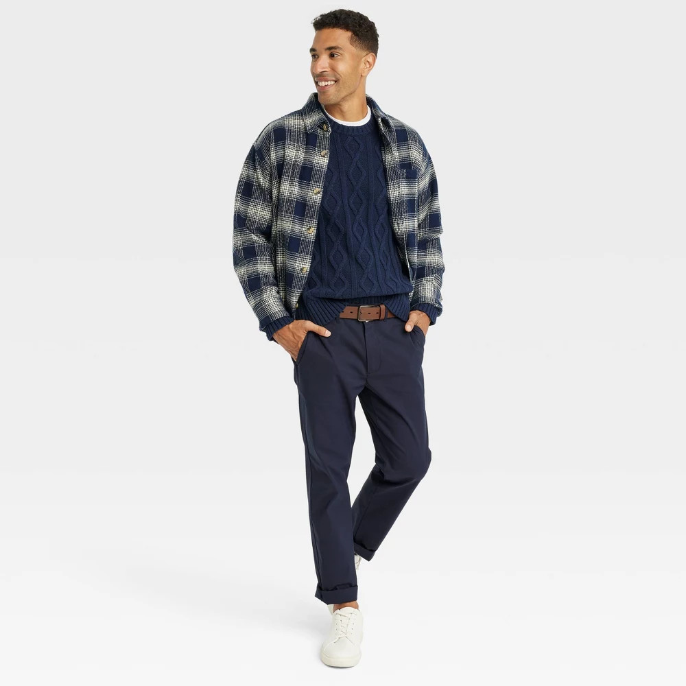 Men's Cable Knit Pullover Sweater - Goodfellow Co Navy Blue L