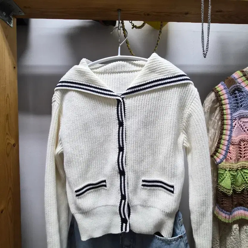 как выглядит And Other Stories Sailor Cotton Cardigan Light Blue/White Edge фото