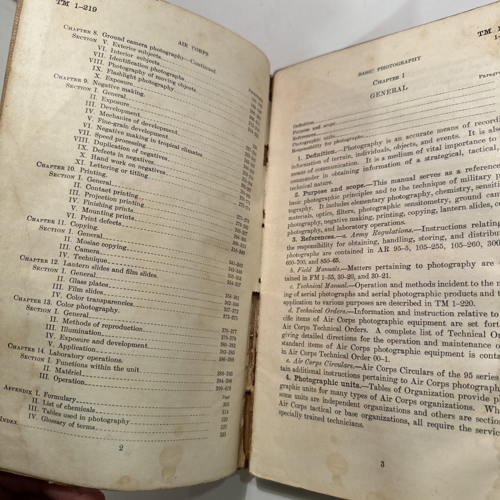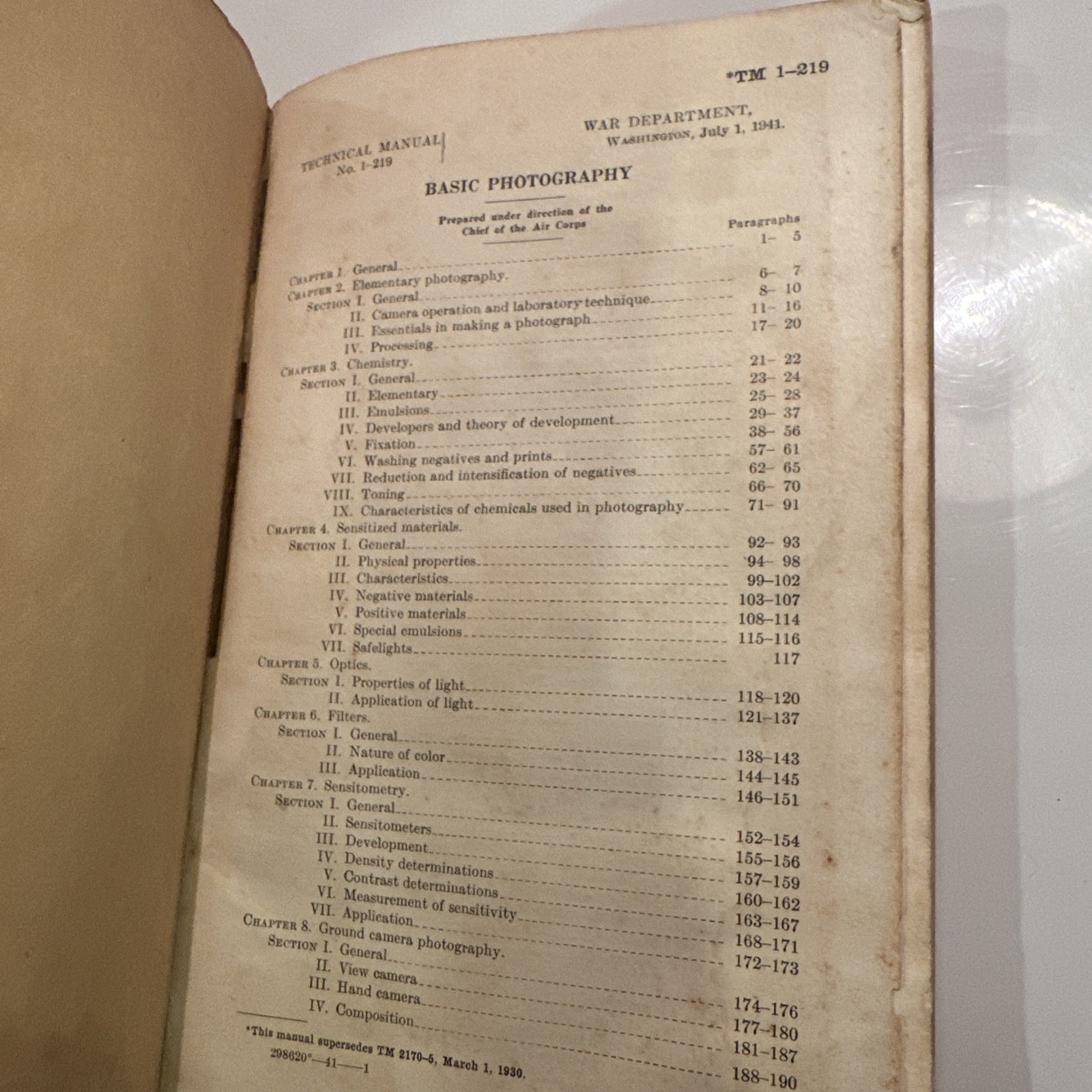 War Department Technical Manual-Basic Photography July 1, 1941 TM 1-219 Vintage