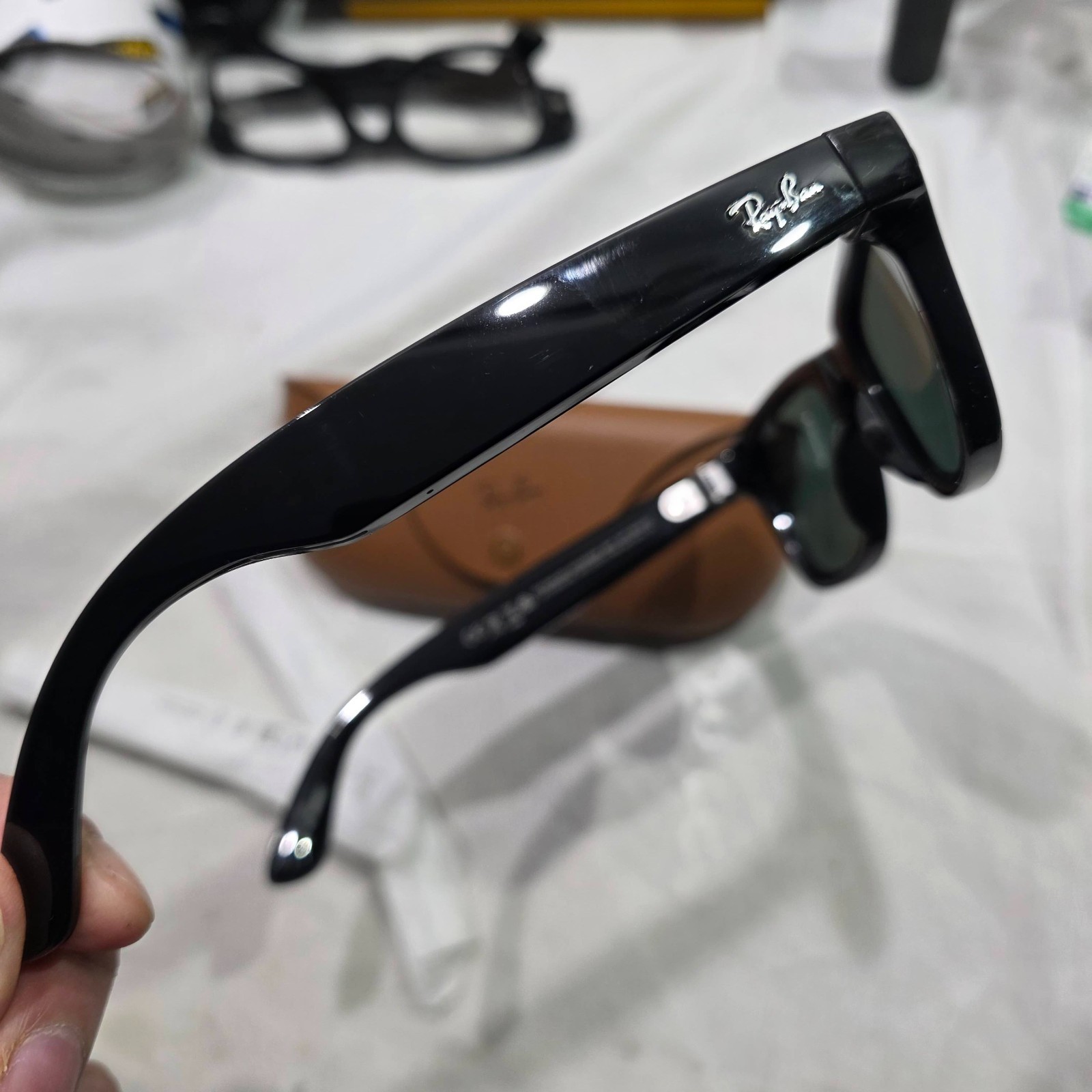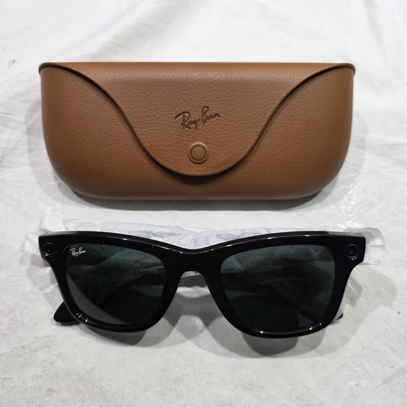 как выглядит Ray-Ban Meta Wayfarer Gen 2 Smart Sunglasses - Shiny Black/G15 Green - RW4012 фото