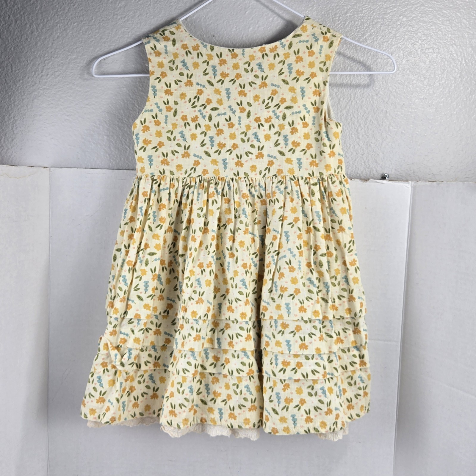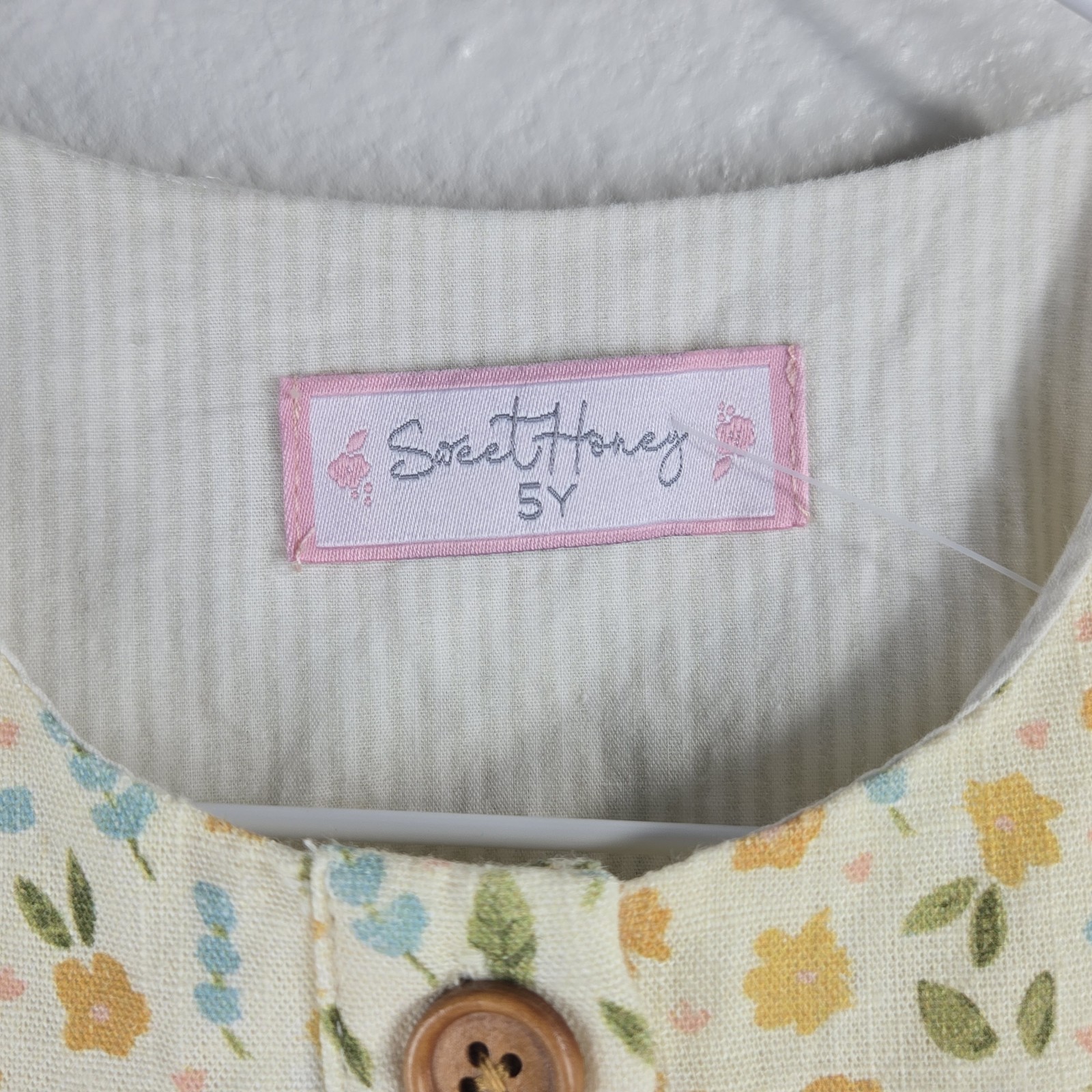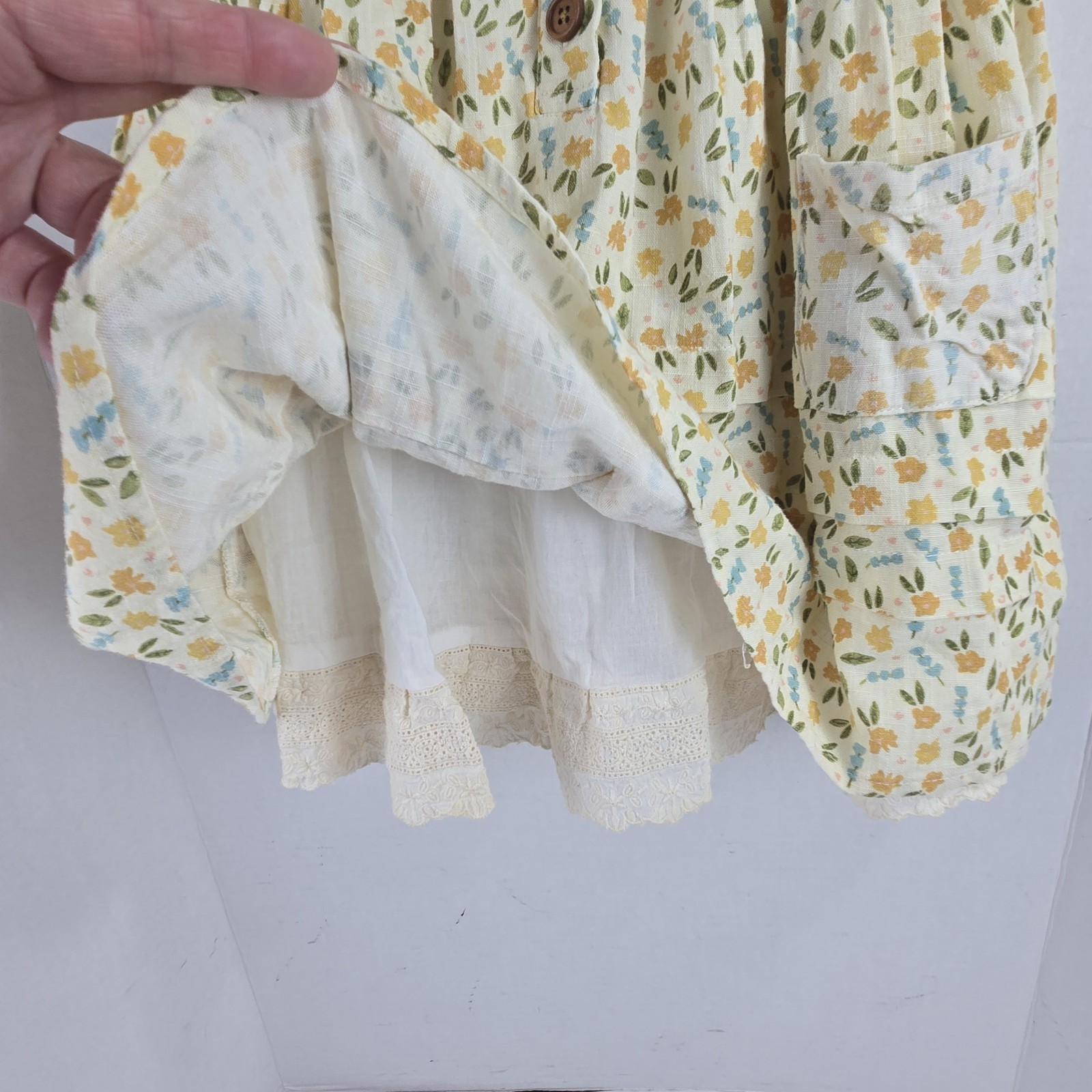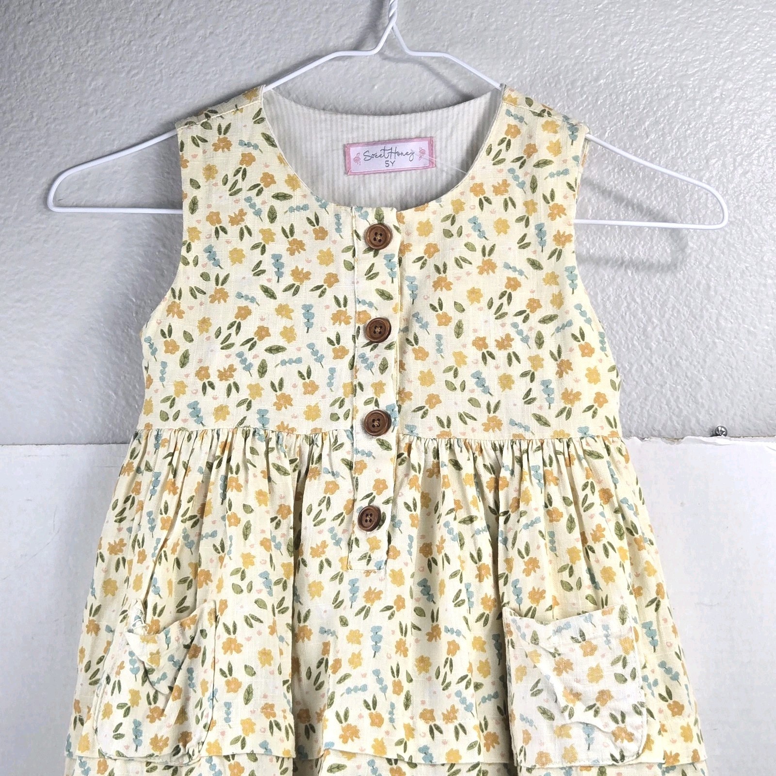 Sweet Honey Boutique Yellow Floral Tunic Dress Ruffles Lace Cotton Linen Size 5Y