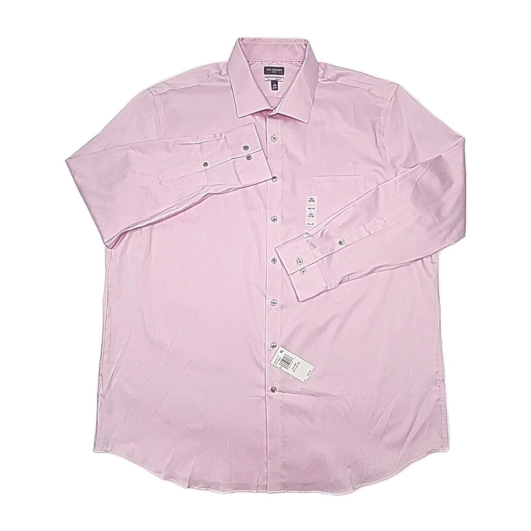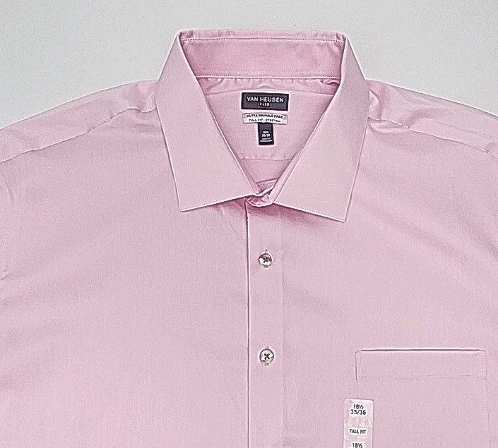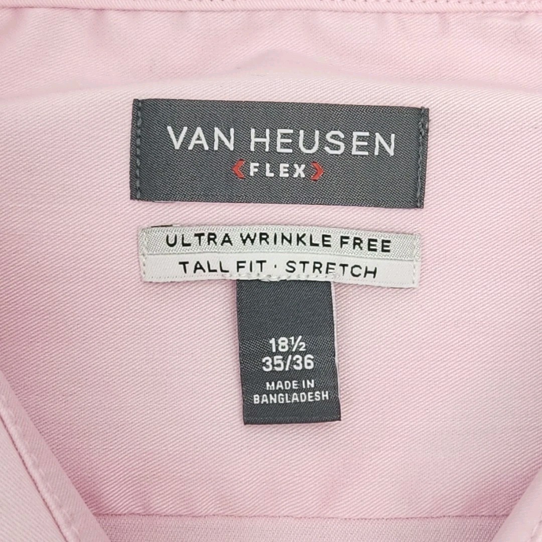 как выглядит Van Heusen Dress Shirt Pink Men Sz 18.5 35/36 Flex Wrinkle Free Tall Fit Stretch фото