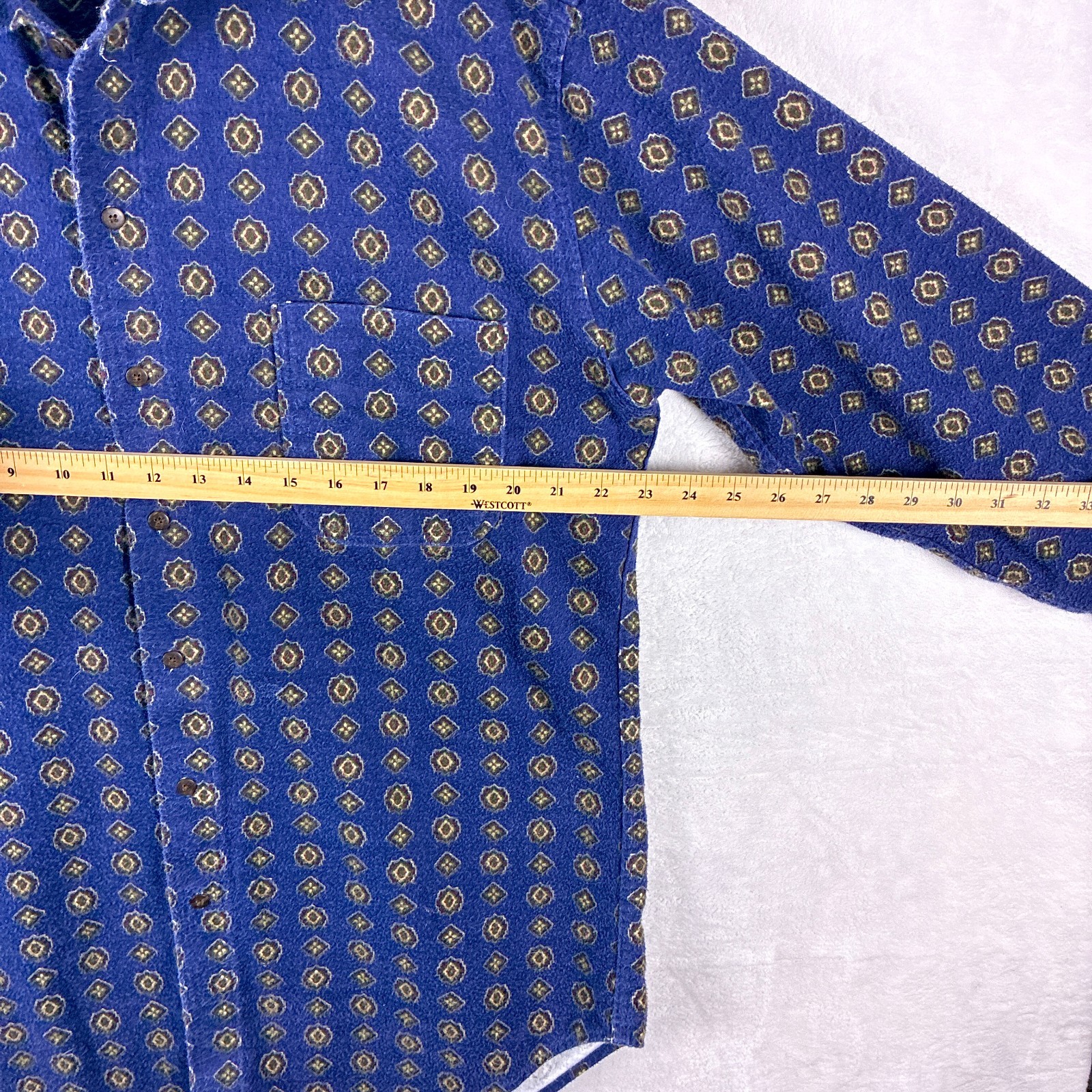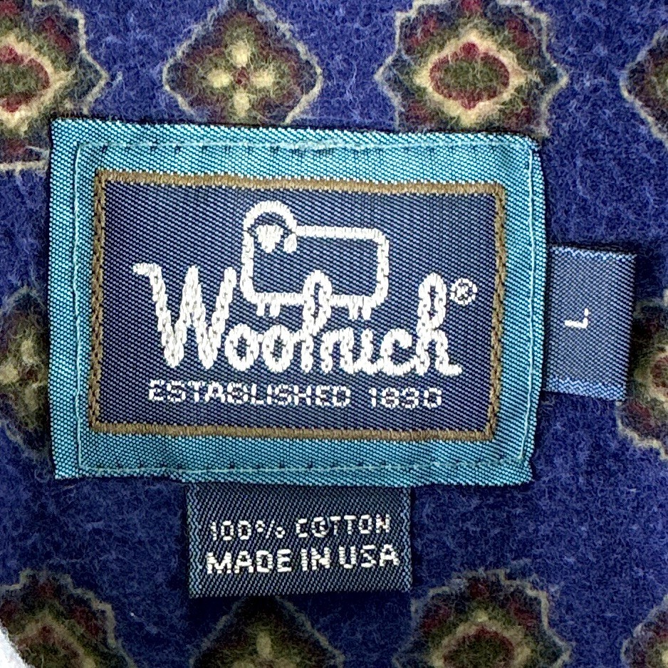 как выглядит VTG Woolrich Chamois Flannel Shirt Mens L Navy Geo AOP Outdoors Heritage 80s USA фото