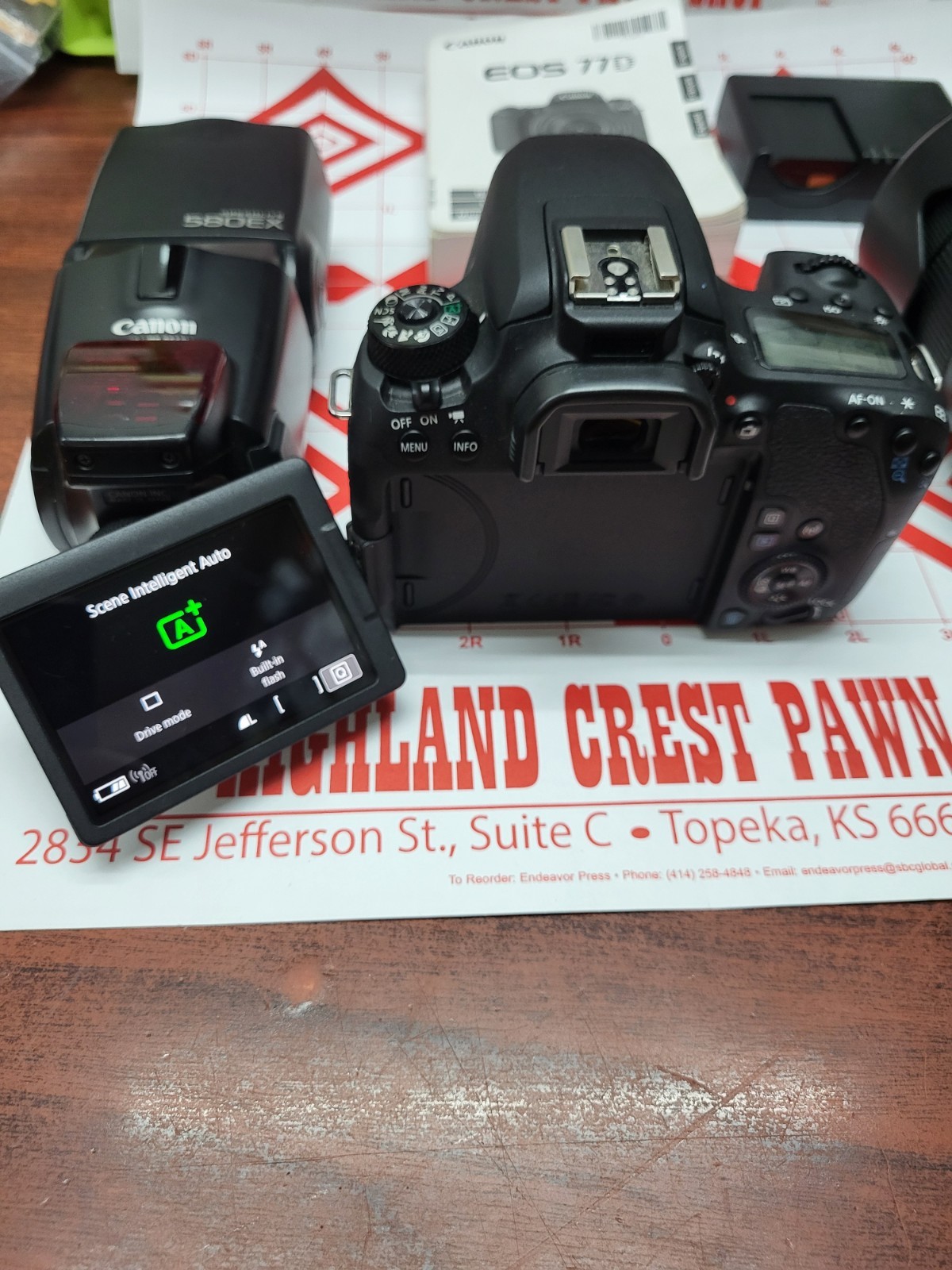 как выглядит Canon EOS 77D DSLR Camera w/ 18-135mm USM Lens batteries, 580EX Speedlite flash фото