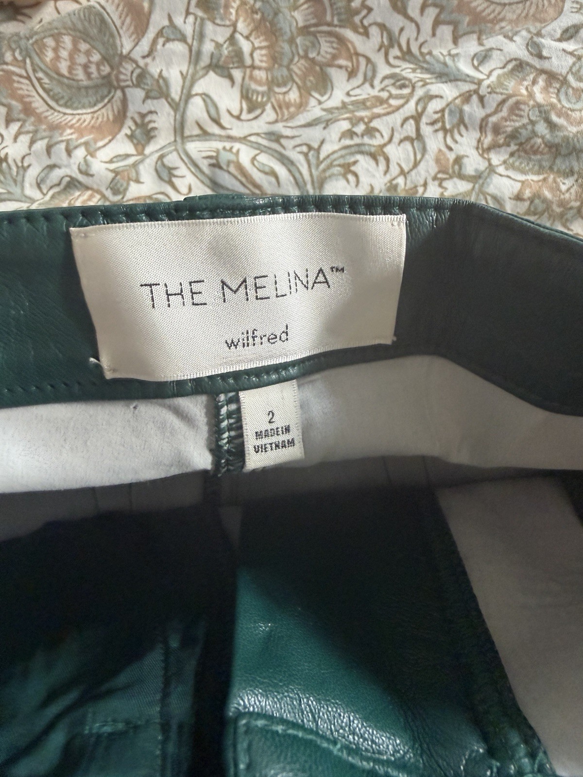 WILFRED The Melina Pants Green Faux Leather Straight Leg Size 2