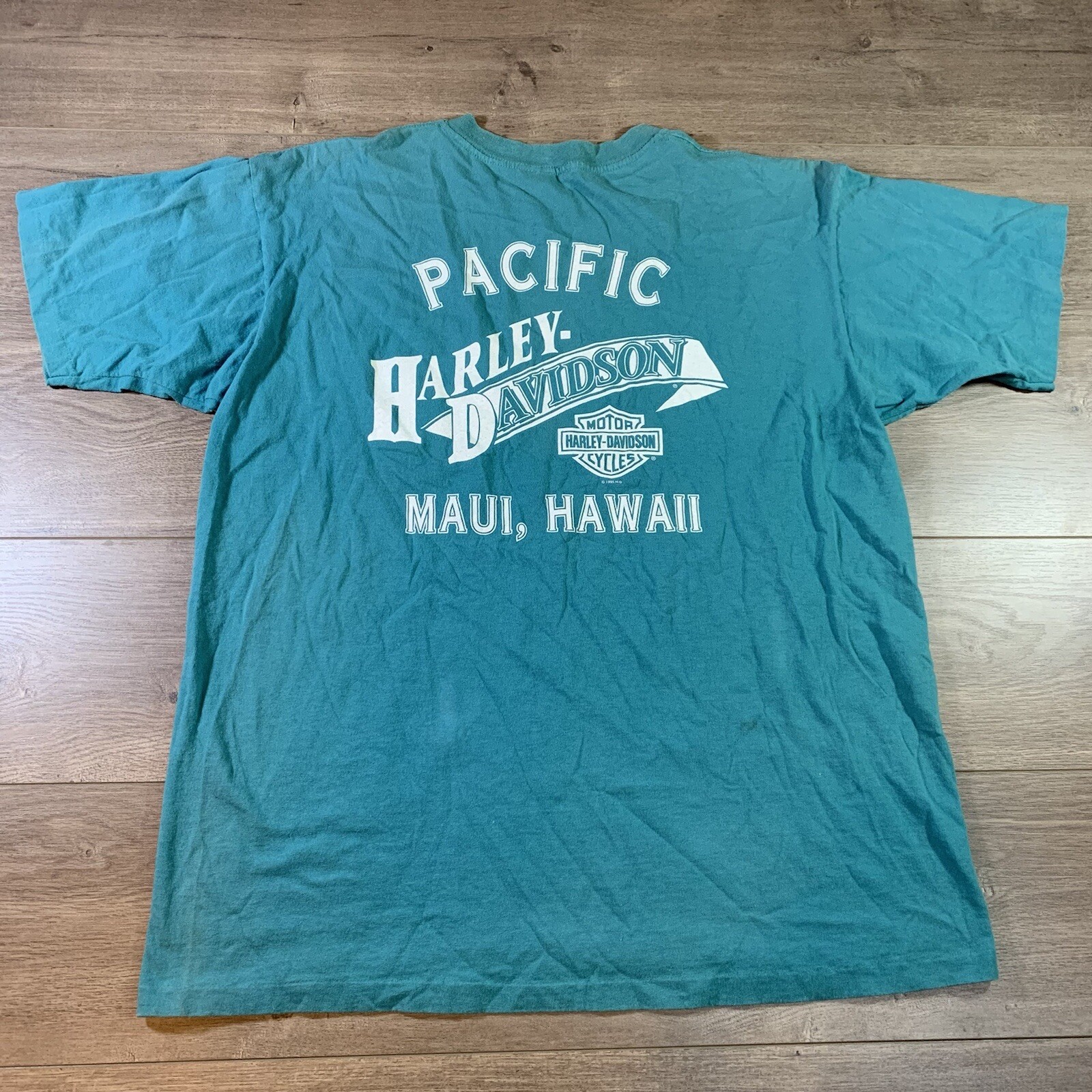 Vintage Harley Davidson 90s Single Stitch T-Shirt Pacific Maui Hawaii Blue Mens
