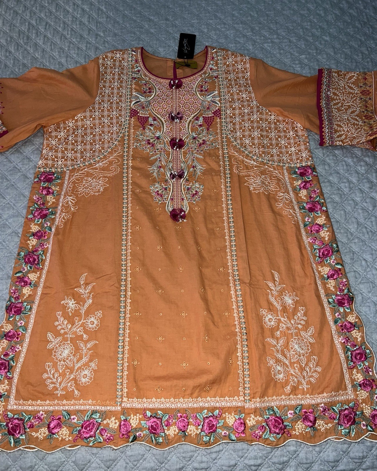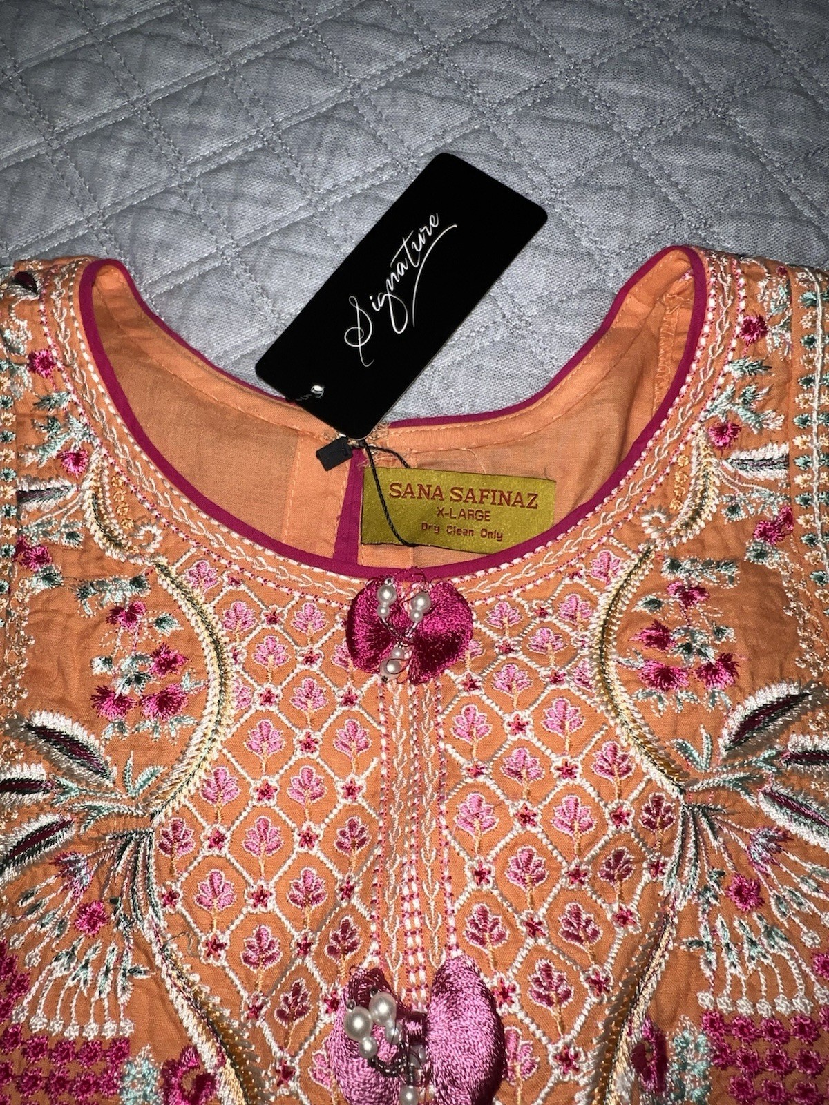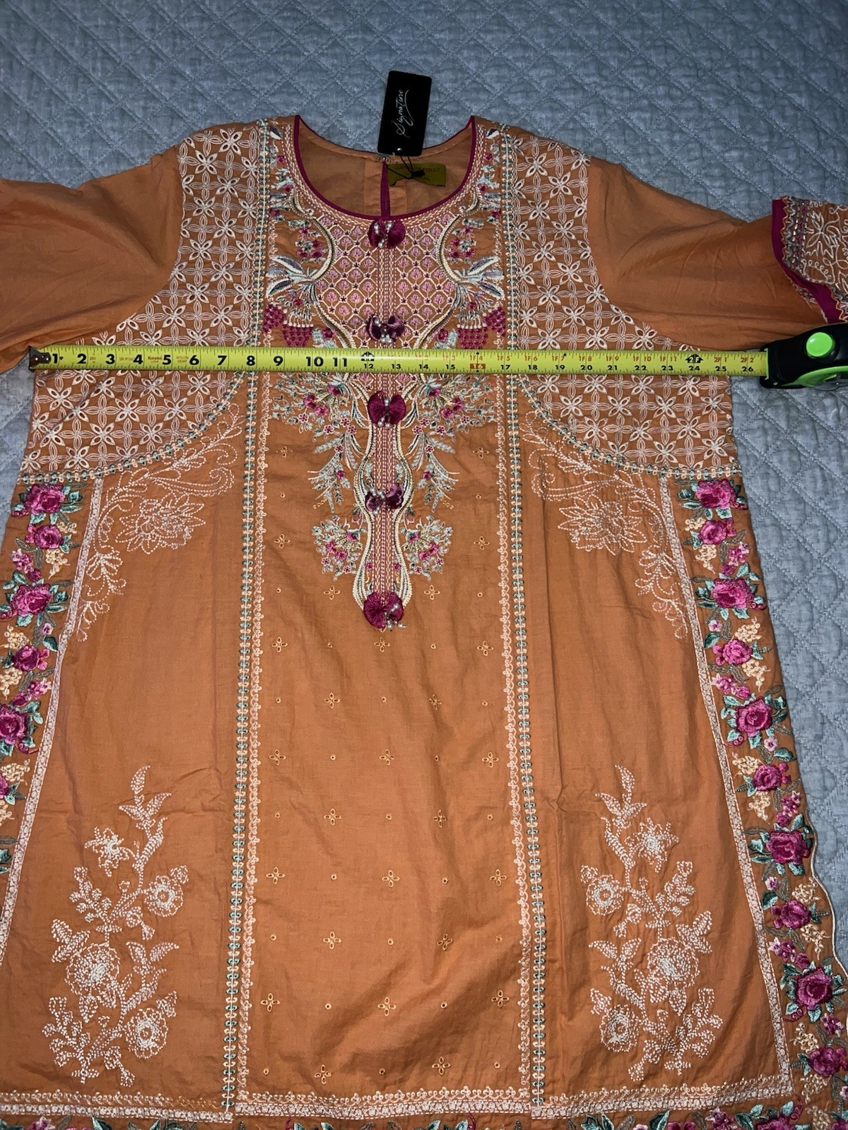 NWT SANA SAFINAZ size XL - 2 piece EMB. KURTA TROUSER SIGNATURE COLLECTON
