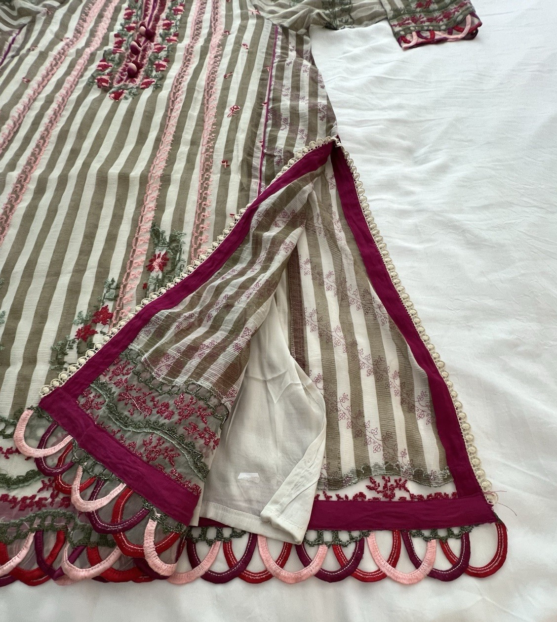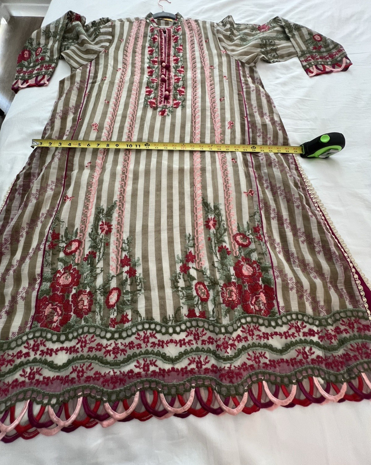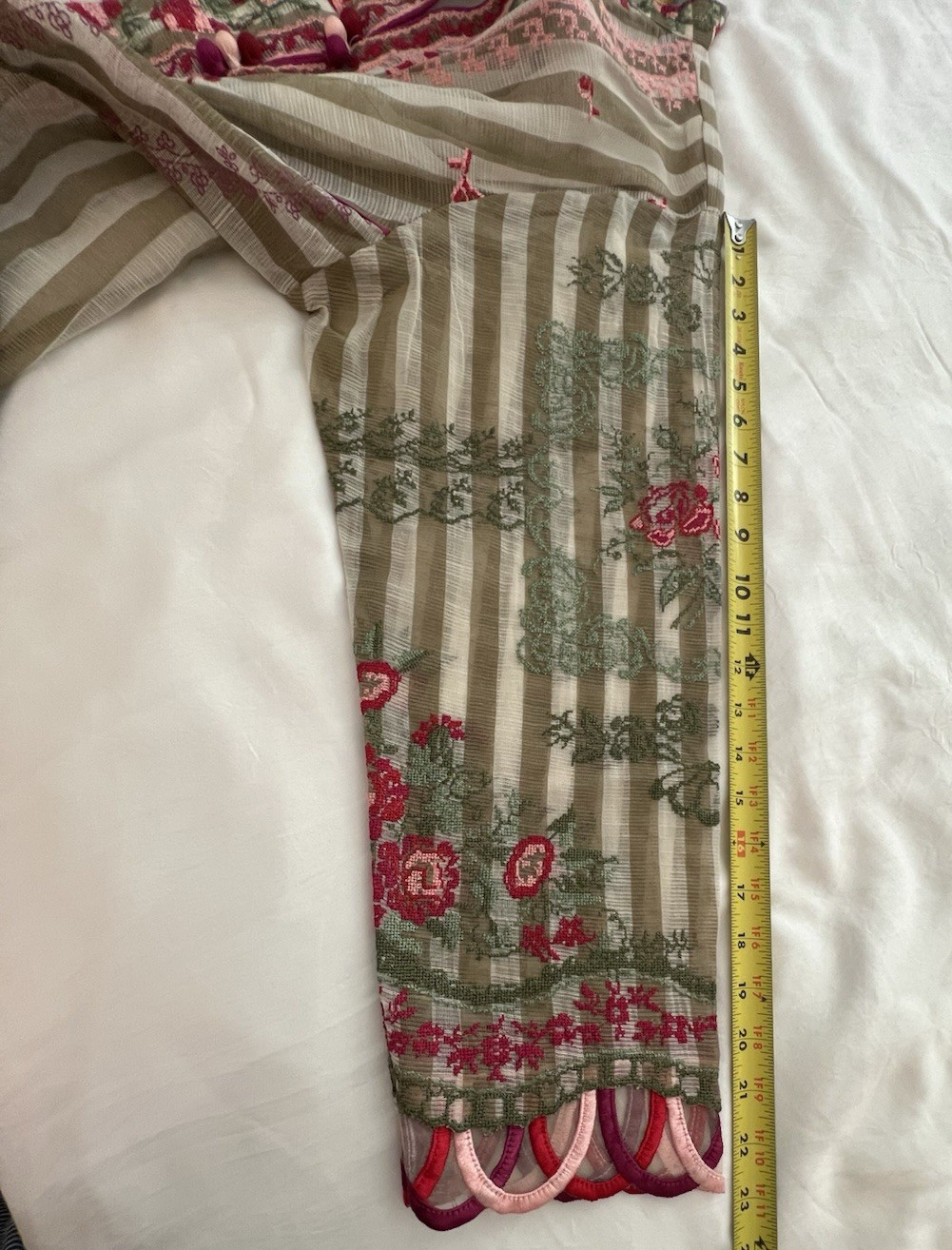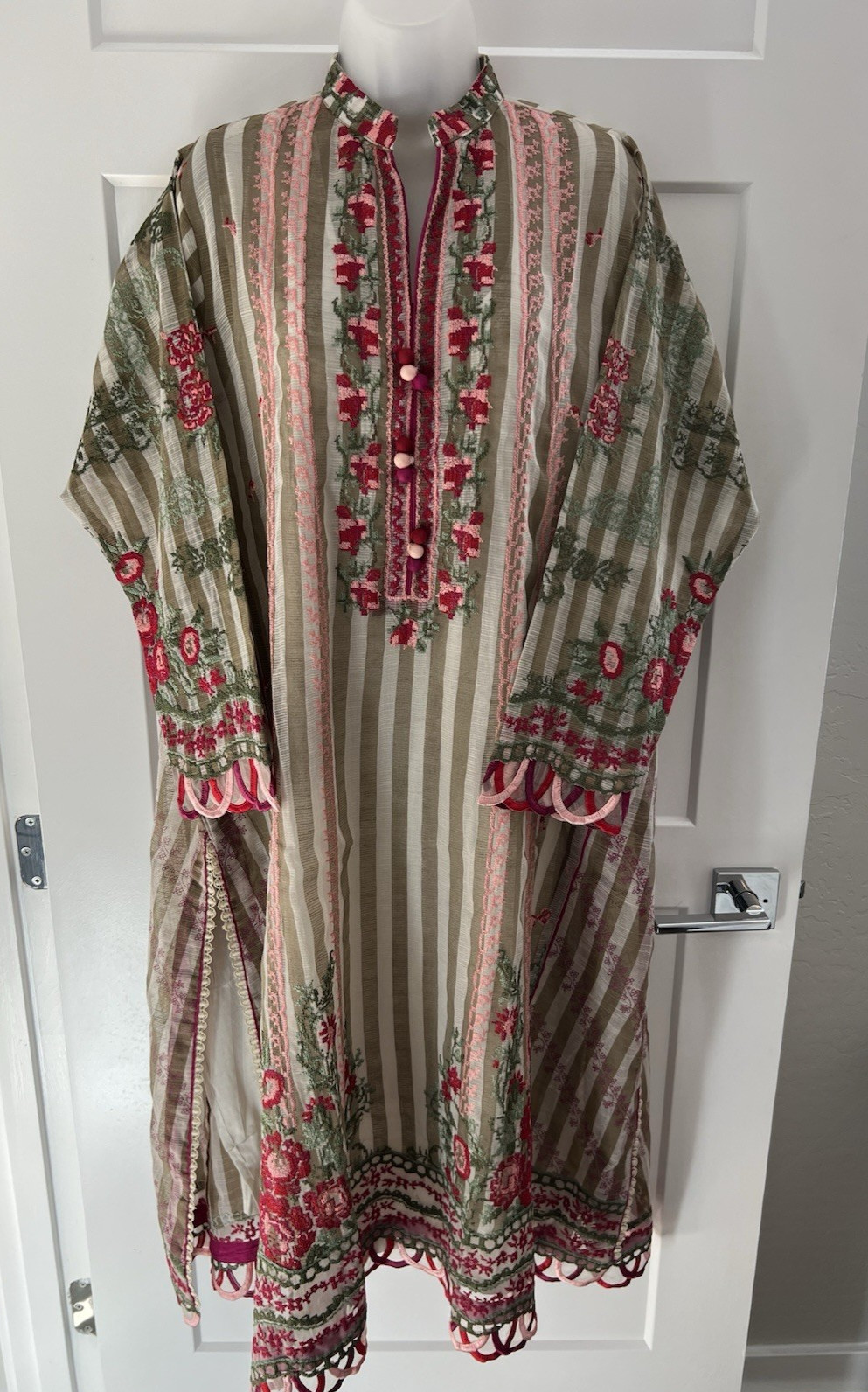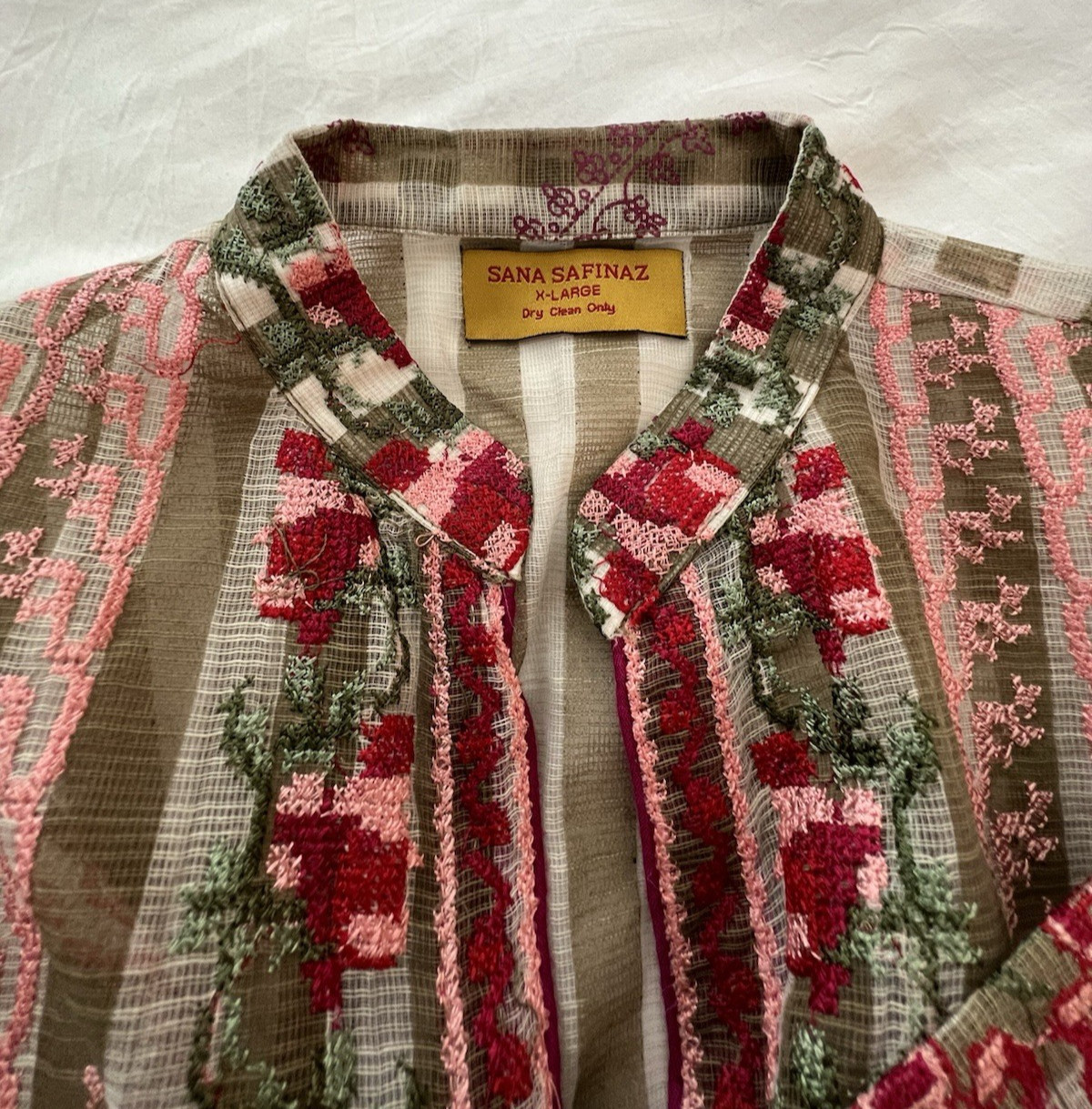 NWOT SANA SAFINAZ size XL - EMBROIDERED SIG. KURTA /KAMEEZ W/ Slip COTTON NET