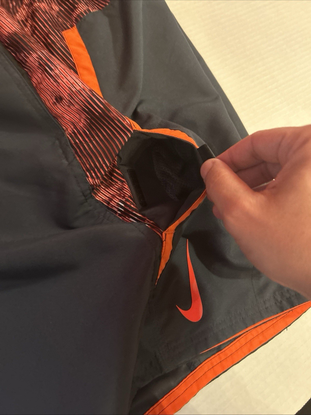 как выглядит Nike Mens Swim Trunk Shorts Size Large NESS7441. Black and Red. Mesh Lining фото