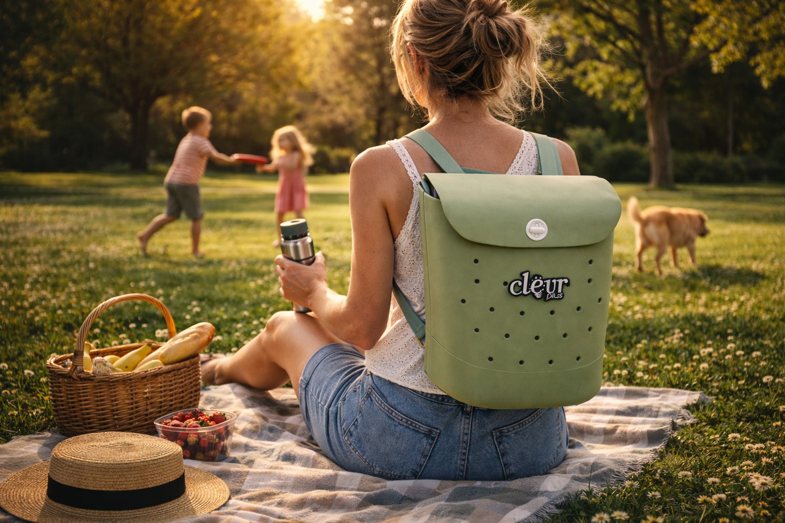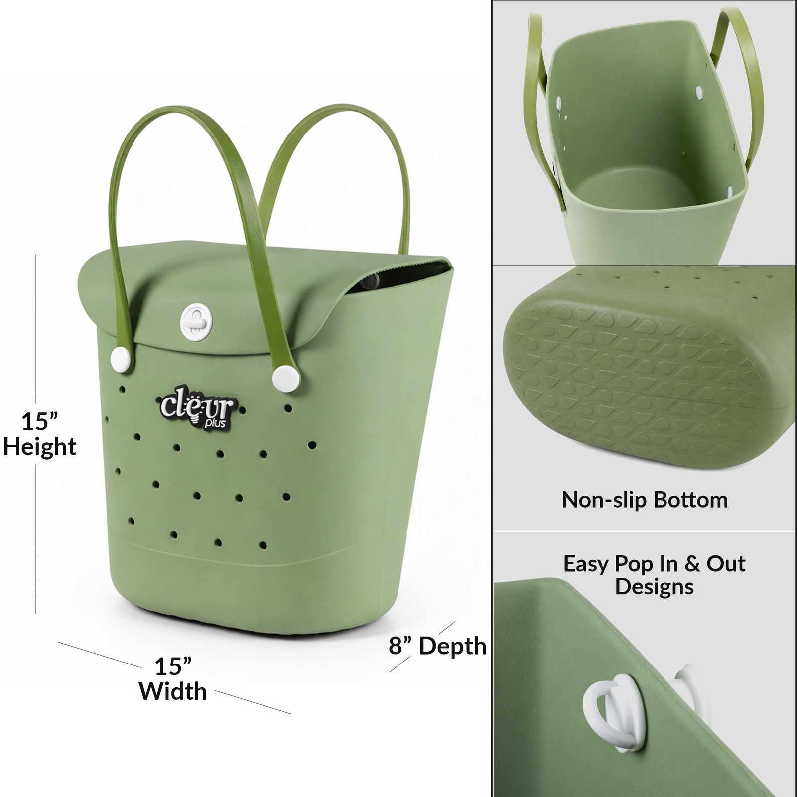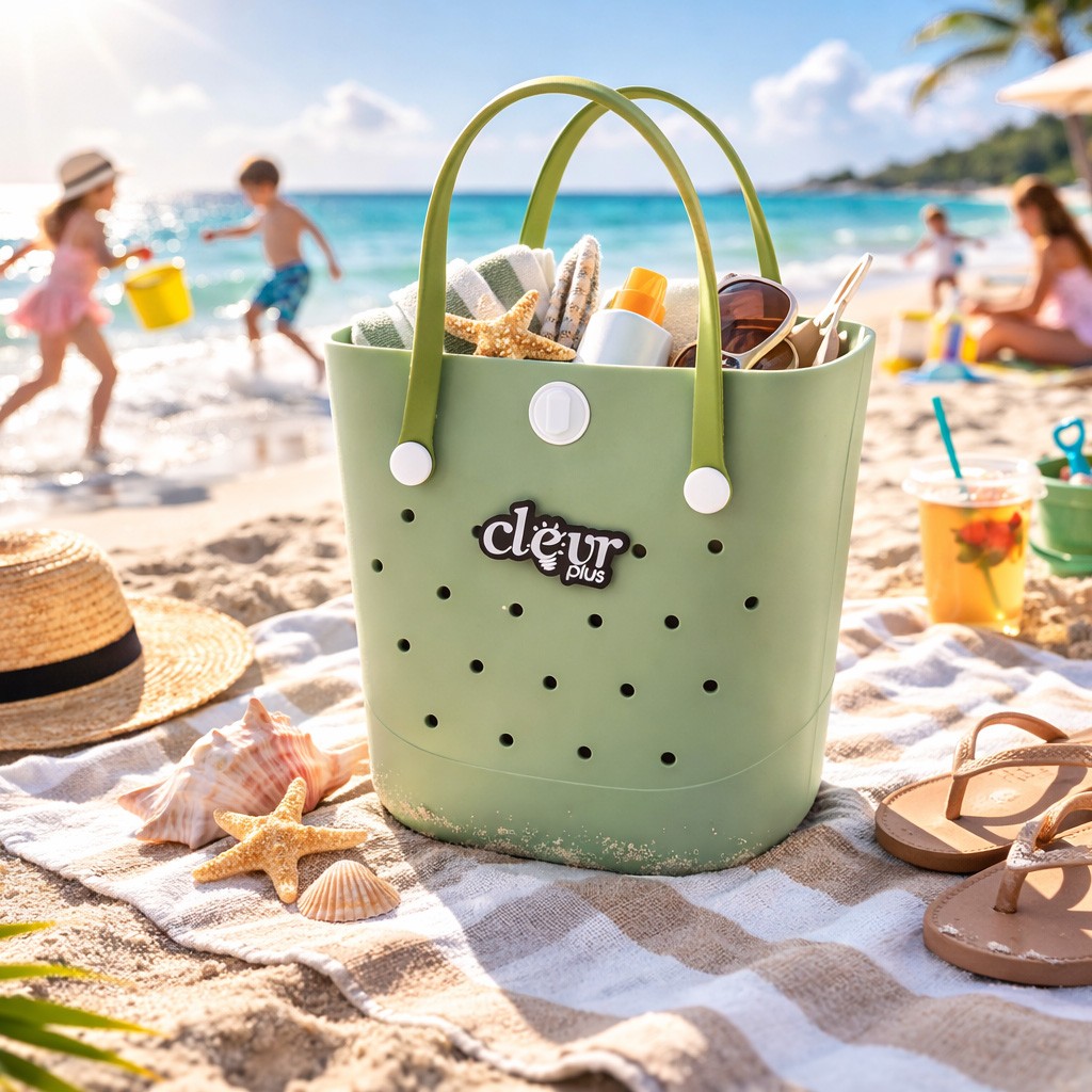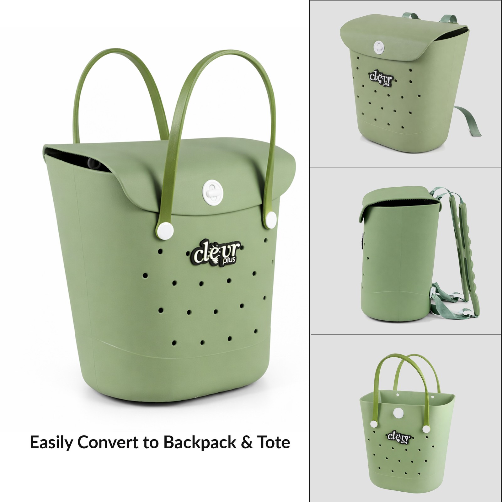 Convertible Beach Tote Backpack Waterproof Sandproof EVA Rubber Pool Bag Green