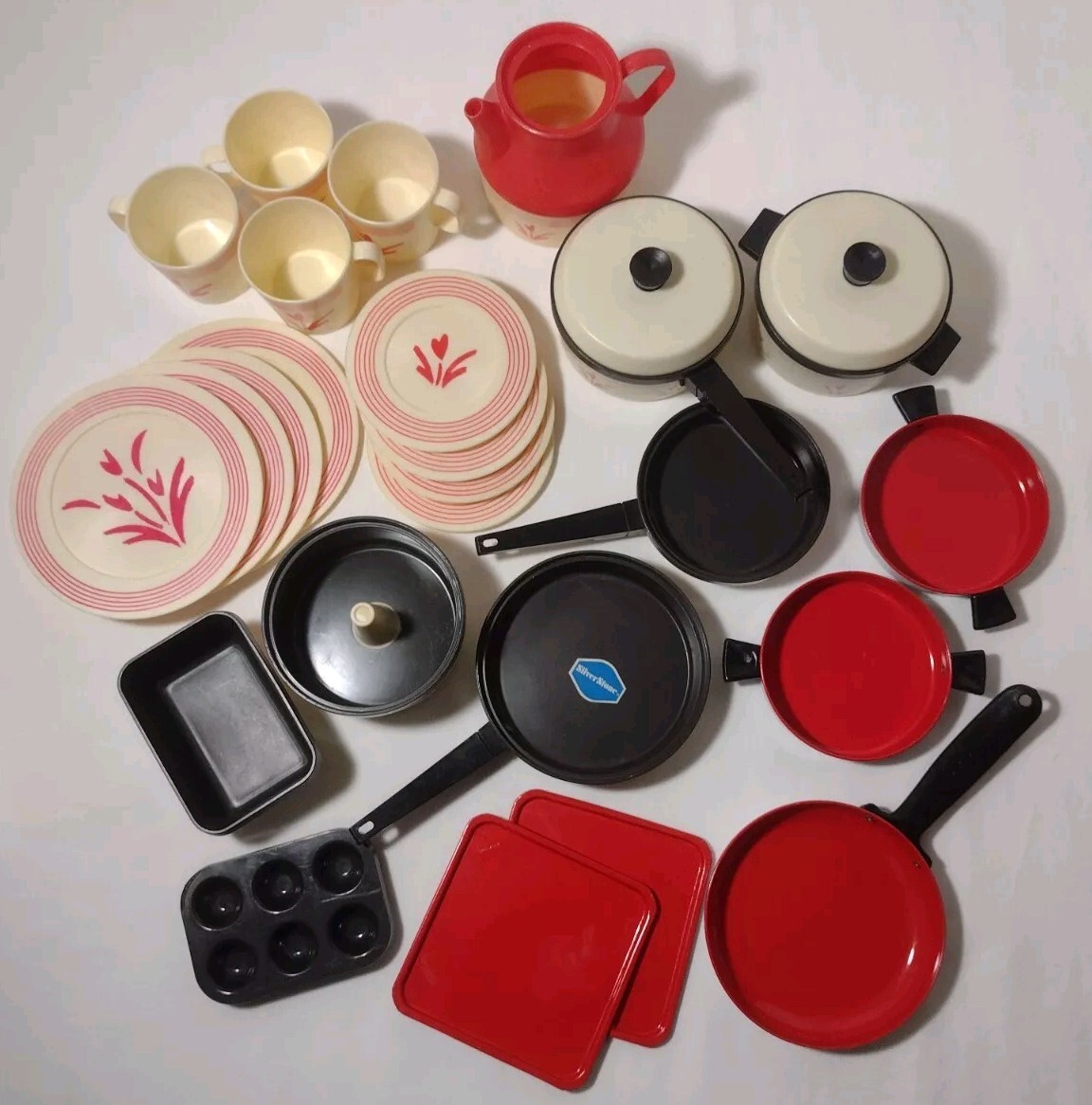 Vintage Cook'N Serve Toy Kitchen Set Pots Pans Dishes Plus Extras Chilton Globe