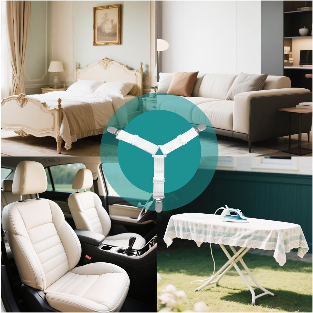 Bed Sheet Retainer Straps,Elasticated Adjustable Mattress Fitted Sheet Clips,...