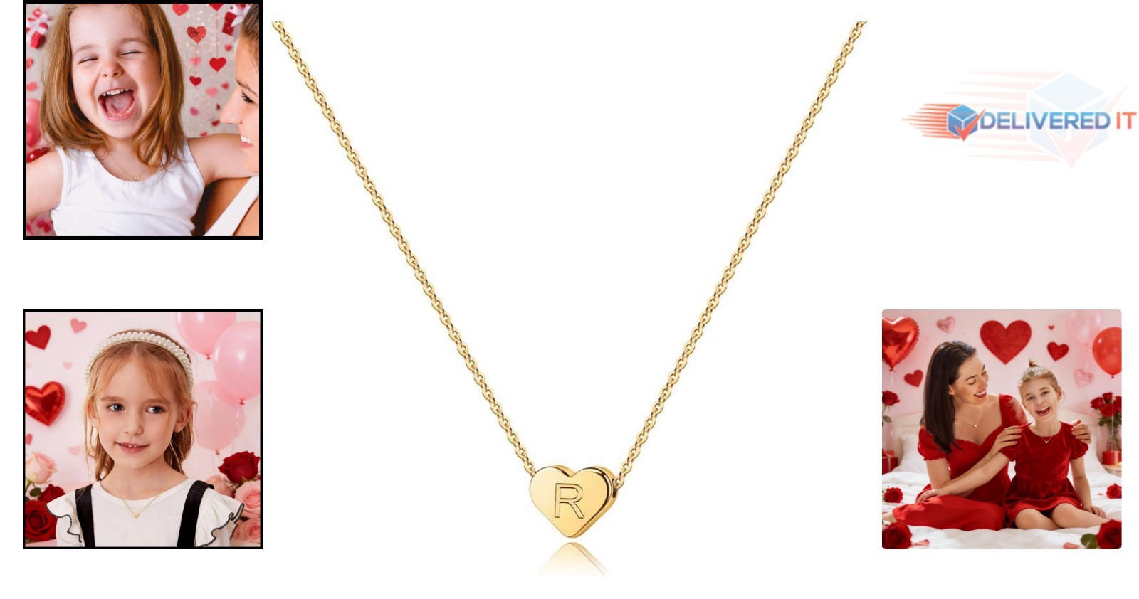Gold Plated Initial Heart Necklace Kids Teen Women Birthday Gift