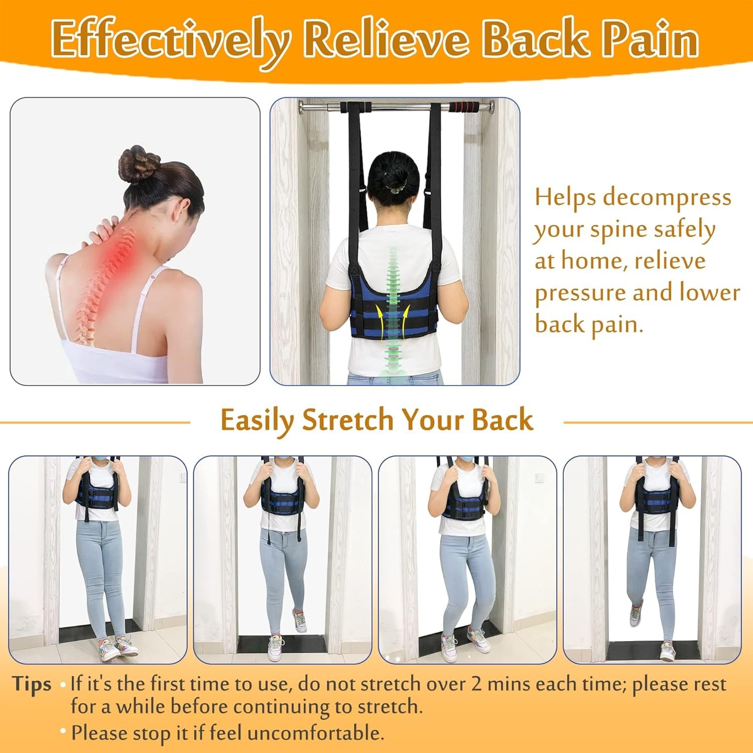 Back Stretcher Lumbar Traction Device Spine Decompression Belt for Pain Relief